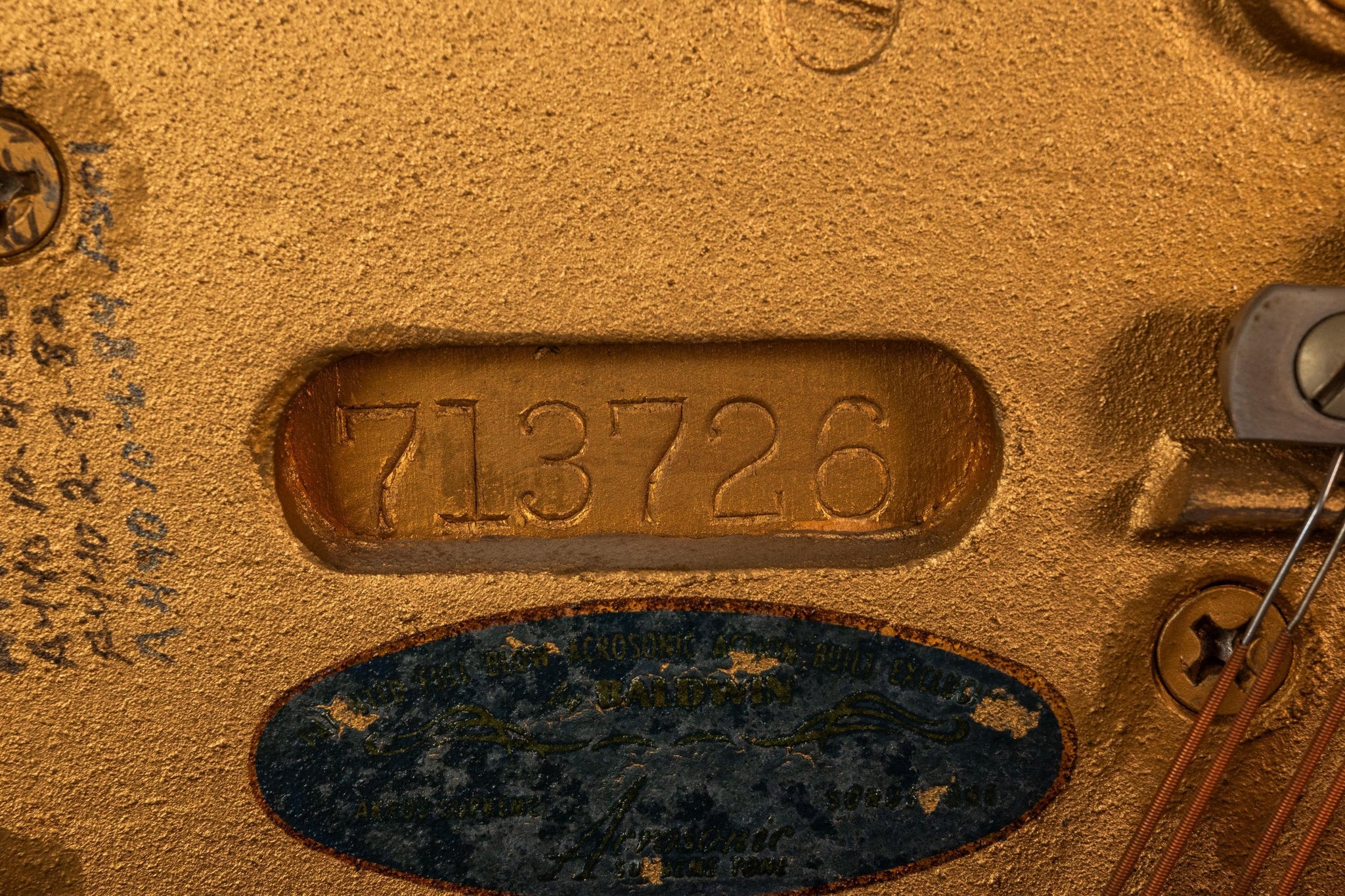 Condition Details: Save fore a few minor veneer repairs this iconic Acrosonic piano by Baldwin is in original, vintage condition and has aged to perfection! The mix of solid and veneered black walnut is in overall very good shape showing only some minor gouges near the bottom corners (as shown in the detail photos provided) a small gouge on near the lower keys (again shown in the detail photos) as well as a few minor veneer repairs and surface scratches throughout (the worst of which can be seen in the detail photos and natural light video provided).