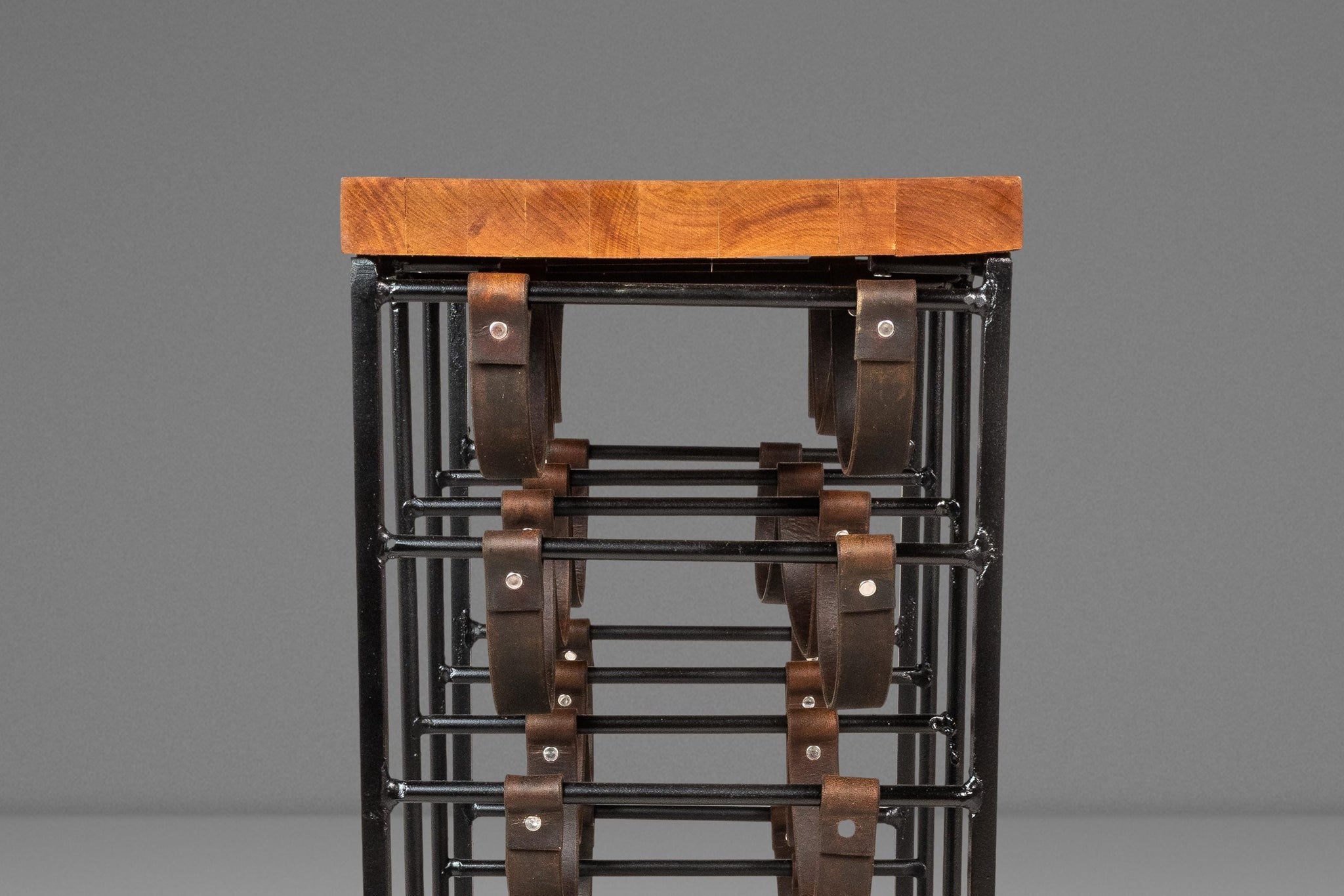 Mid-Century Modern 21 Bottle Wine Rack in Leather & Wrought Iron w/ Butcher Block Top by Arthur Umanoff, USA, c. 1960s-ABT Modern