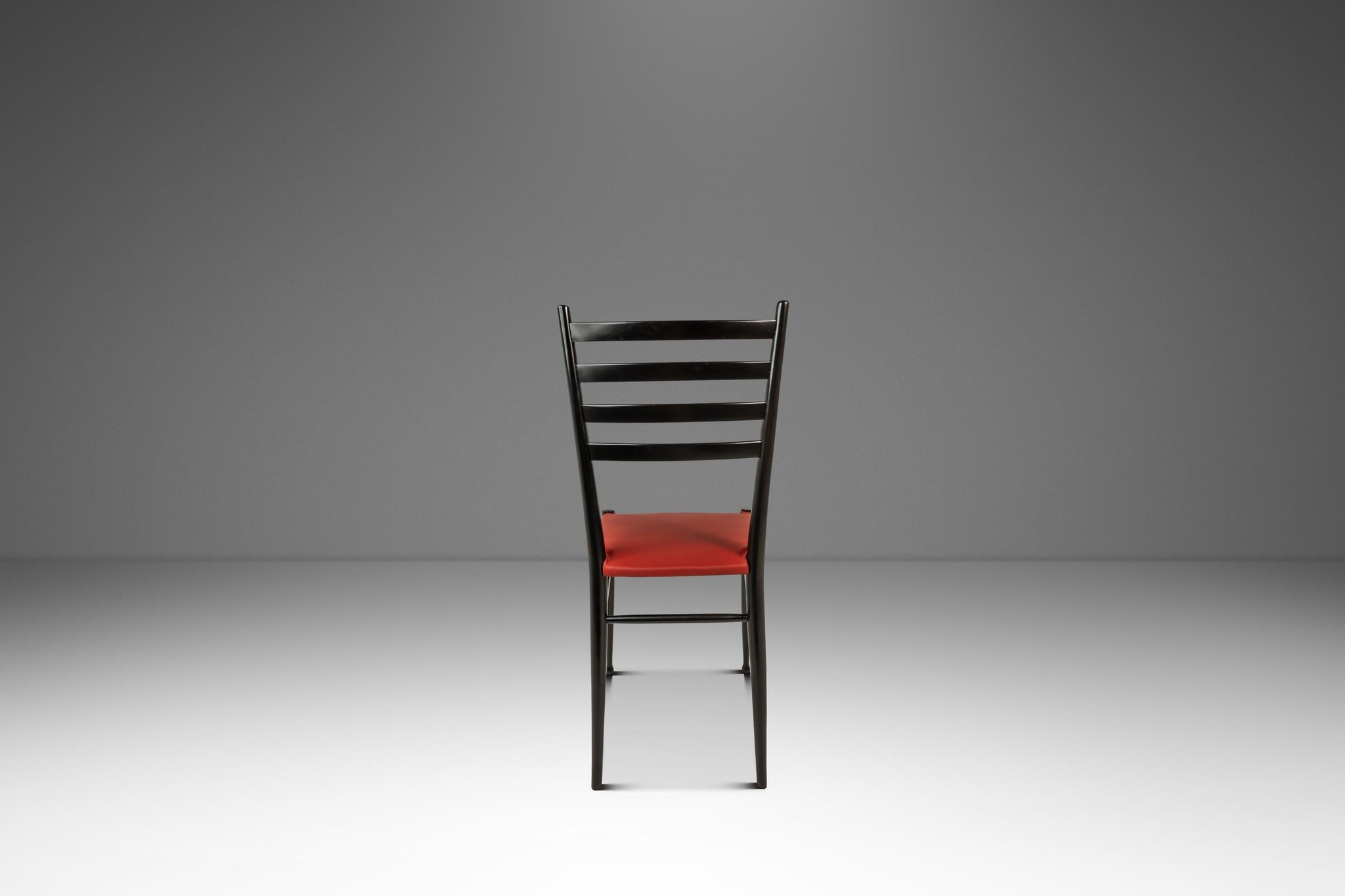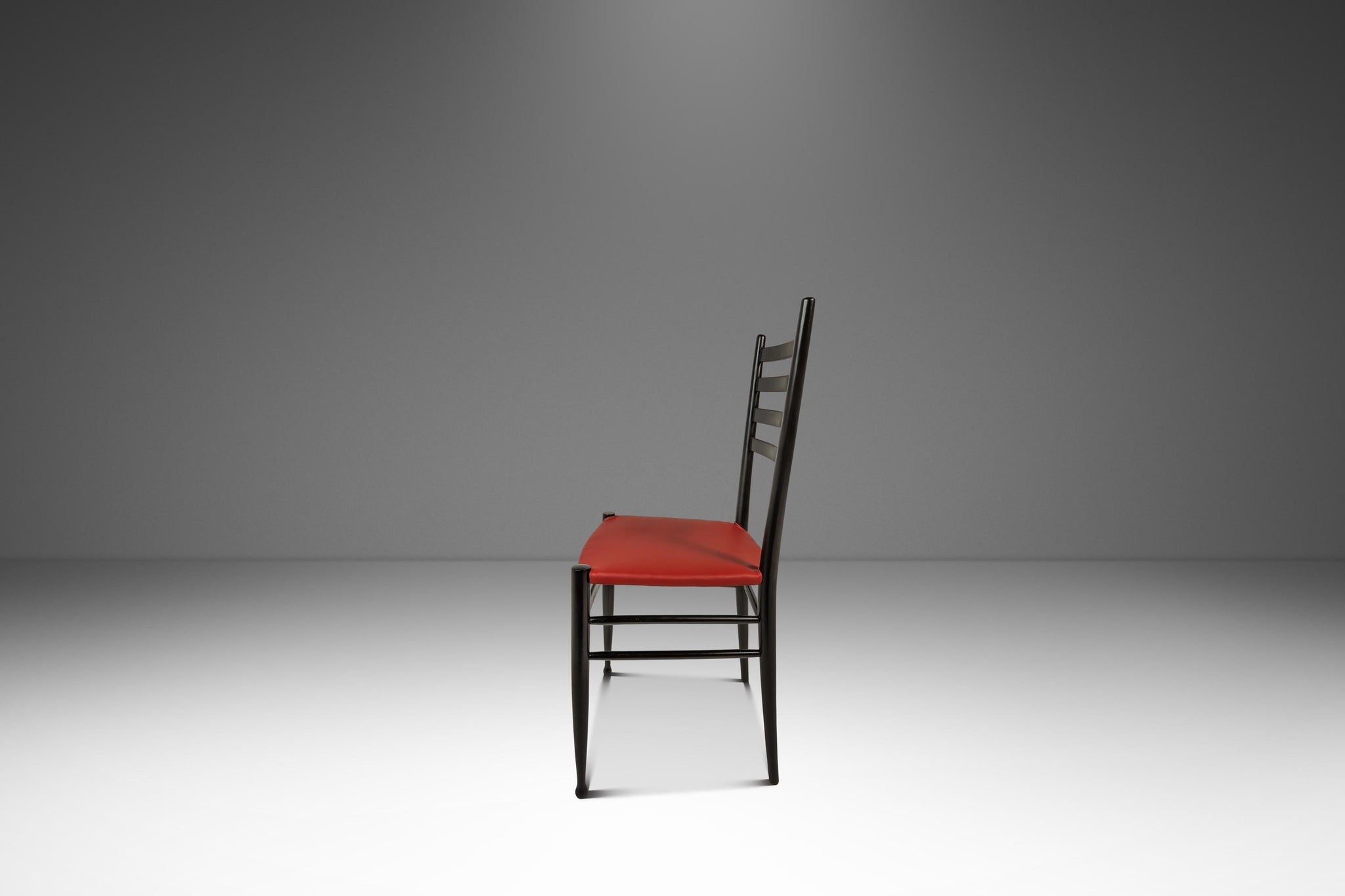 Stamped "Made in Italy" these gorgeous chairs have been painstakingly restored ensuring that each chair is structurally sound and weight-bearing in spite of it's ultra-slim design and footprint. Each chair also features new support straps and medium density foam for maximum comfort and longevity and assuring that these chairs are ready for a lifetime more of use.