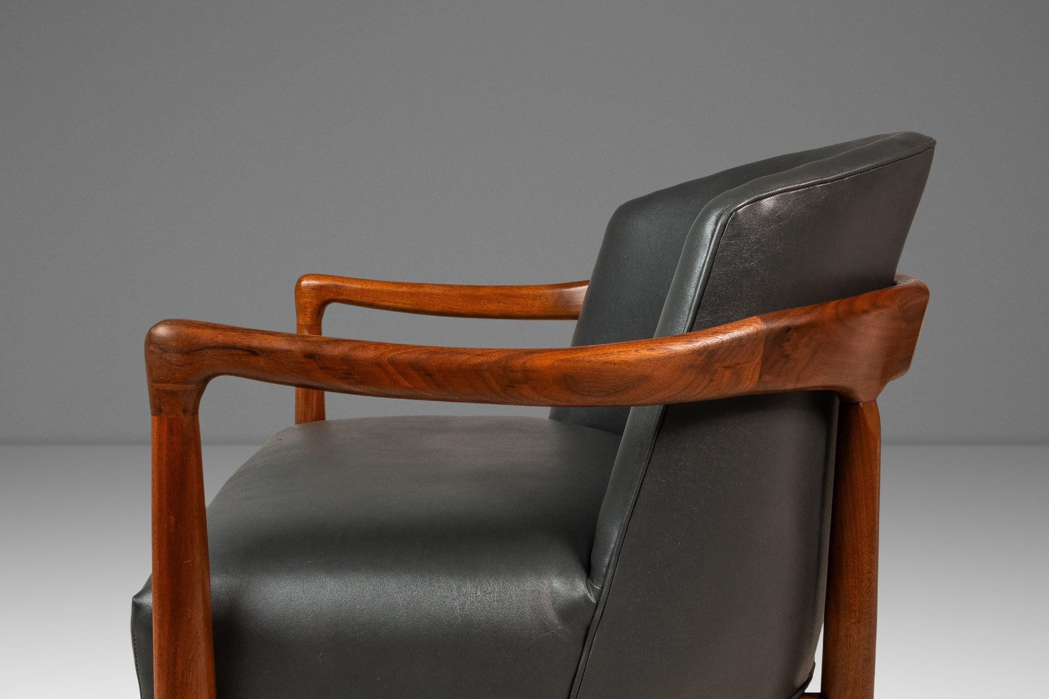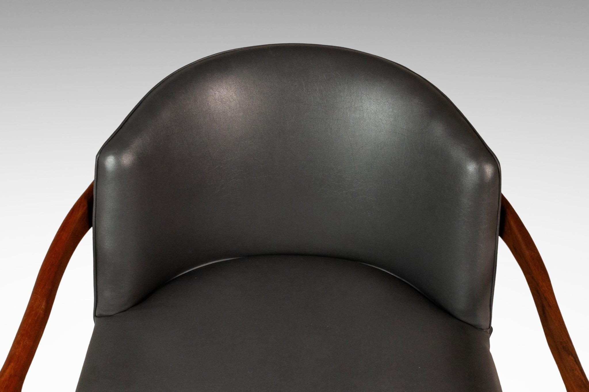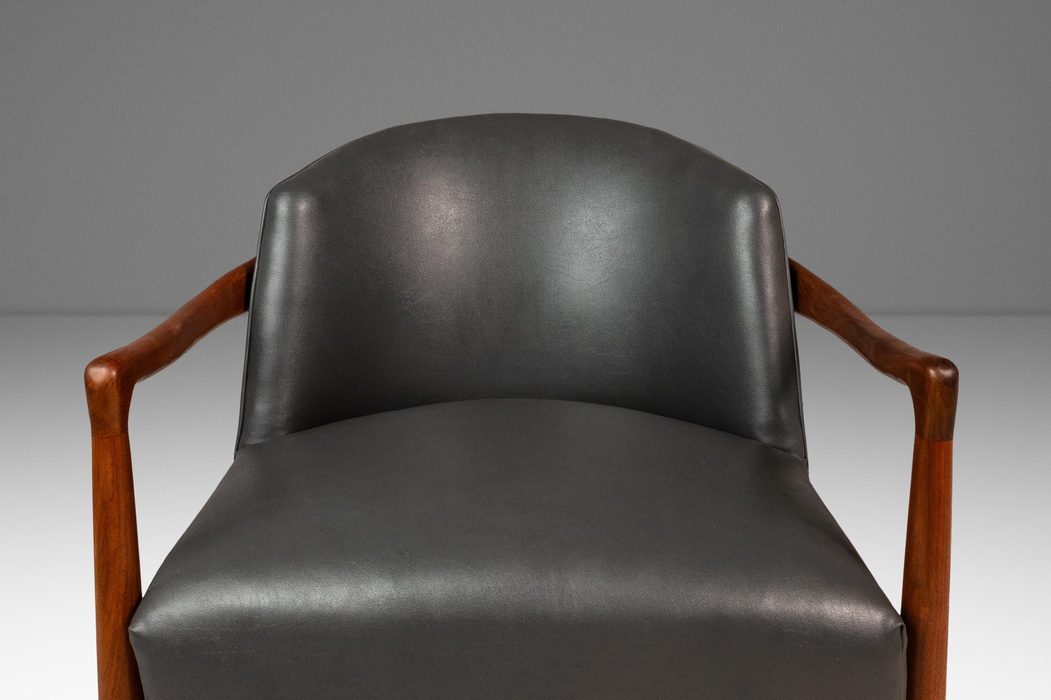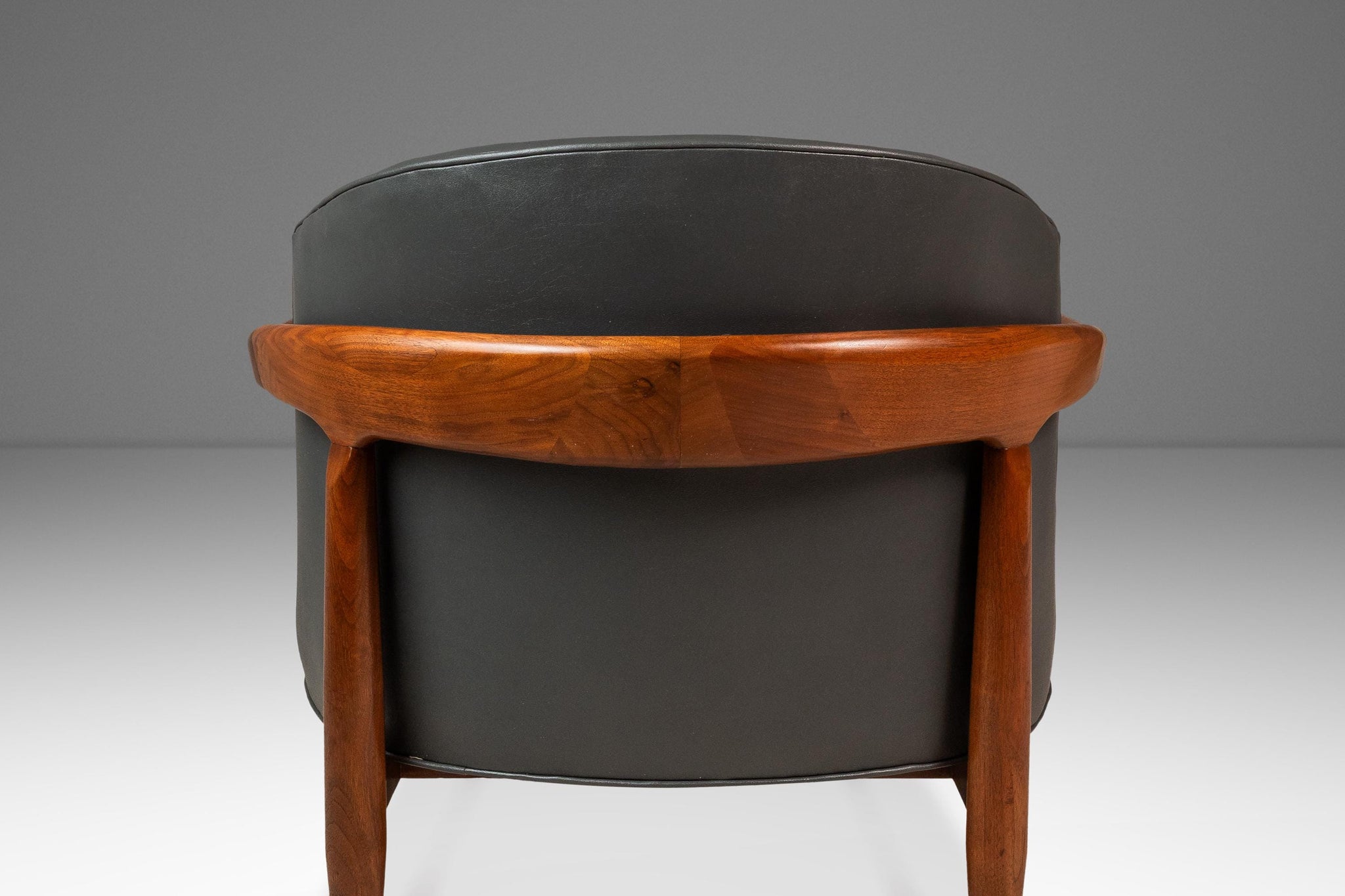 Title: Mid-Century Danish Modern Lounge Tub Barrel Chair in Walnut & Original Vinyl After Finn Andersen, USA, c. 1960s