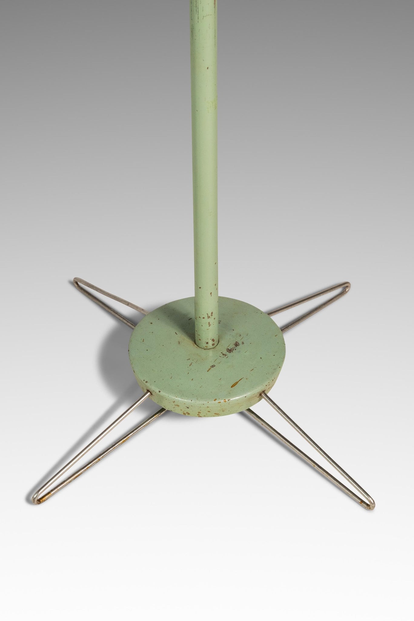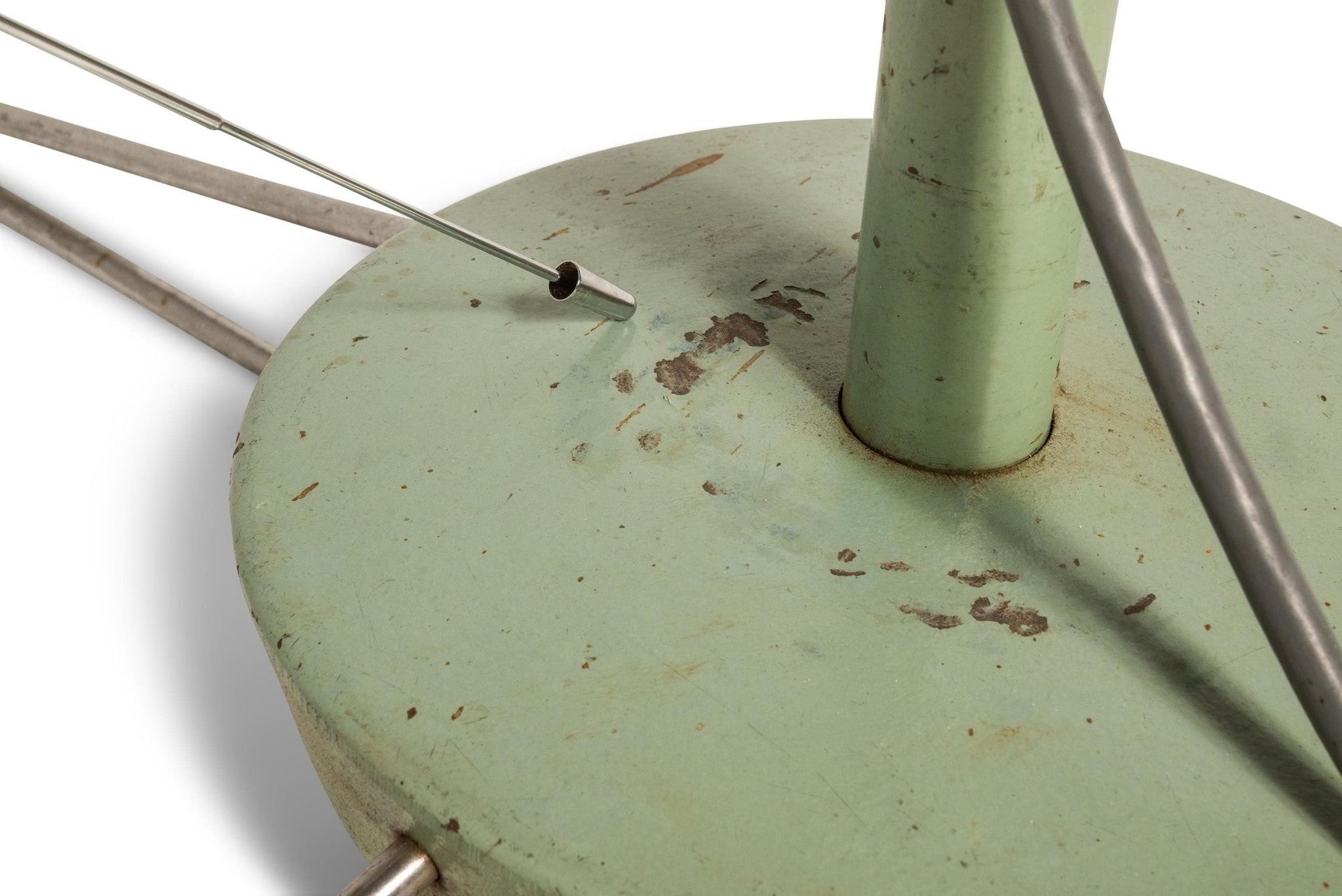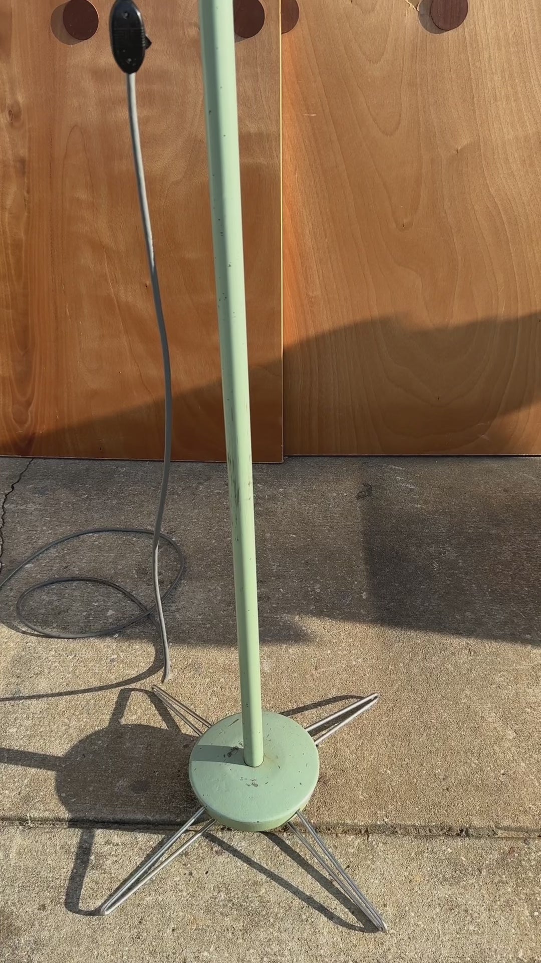 Condition Details: This heavy duty surgical floor lamp is in 100% original, vintage condition. The solid metal frame and legs, painted a vintage-feeling mint-green, shows character-rich patina throughout (nicks, scratches, spot rust etc.) which can be seen clearly in the detail photos and demonstration video provided.