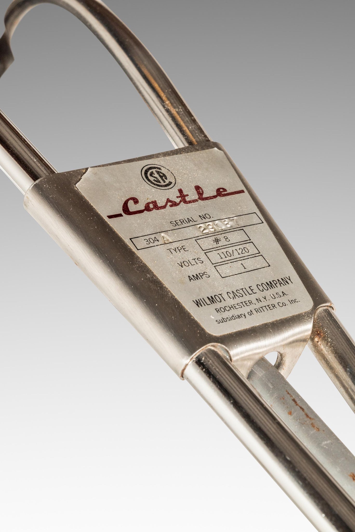 About: Introducing an authentically vintage Mid-Century Modern surgical lamp in character rich patina. Built from solid steel by the Castle Wilmot Company, based in New York, this floor lamp is a testament of to American craftmanship during the early 1960s. Able to turn 360 degrees and articulate up and down and side to side via a handy control knob this heavy duty floor lamp is as functional as it is visually captivating.