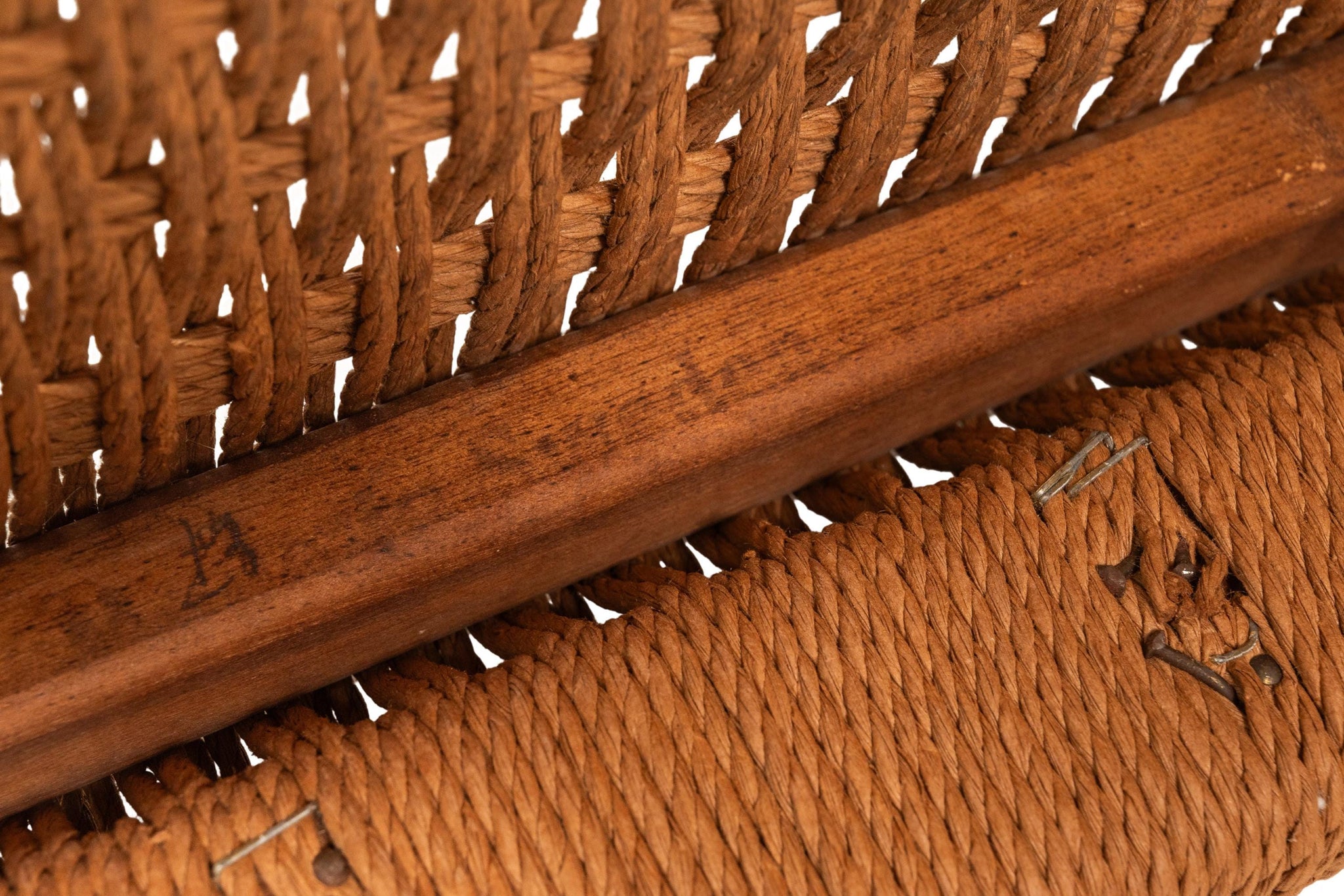 The original seagrass paper cord seat is in remarkably good shape showing only minor areas of discoloration which can be seen in the detail photos and natural light video provided. With that said there are no broken strands, fraying or odors present whatsoever and the seat is weight-bearing.