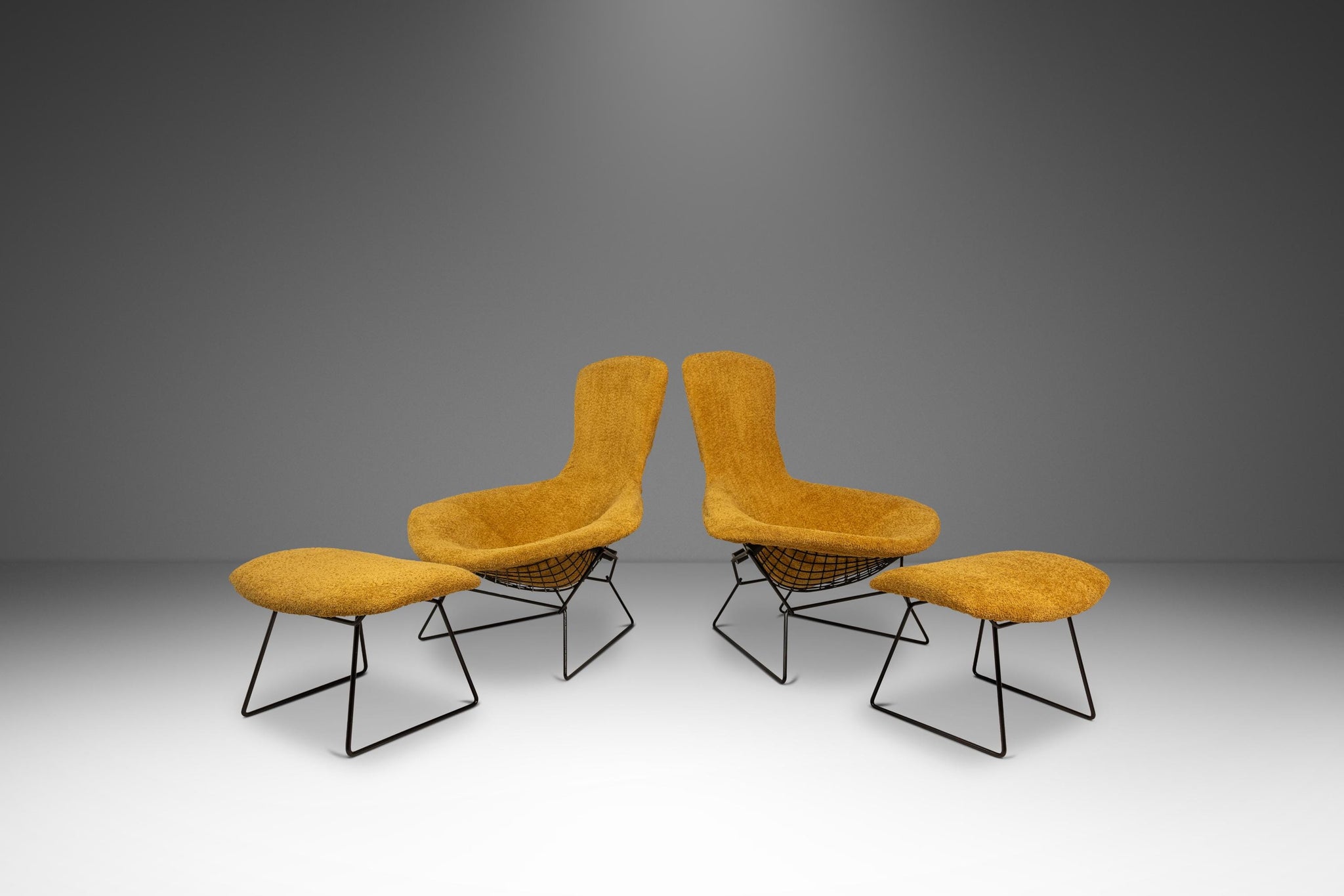 Title: Set of Two (2) Authentic Bird Lounge Chairs w/ Matching Ottomans in Bouclé by Harry Bertoia for Knoll, USA, c. 1960's