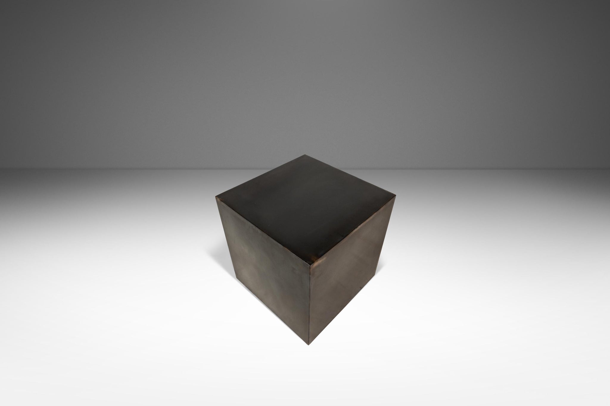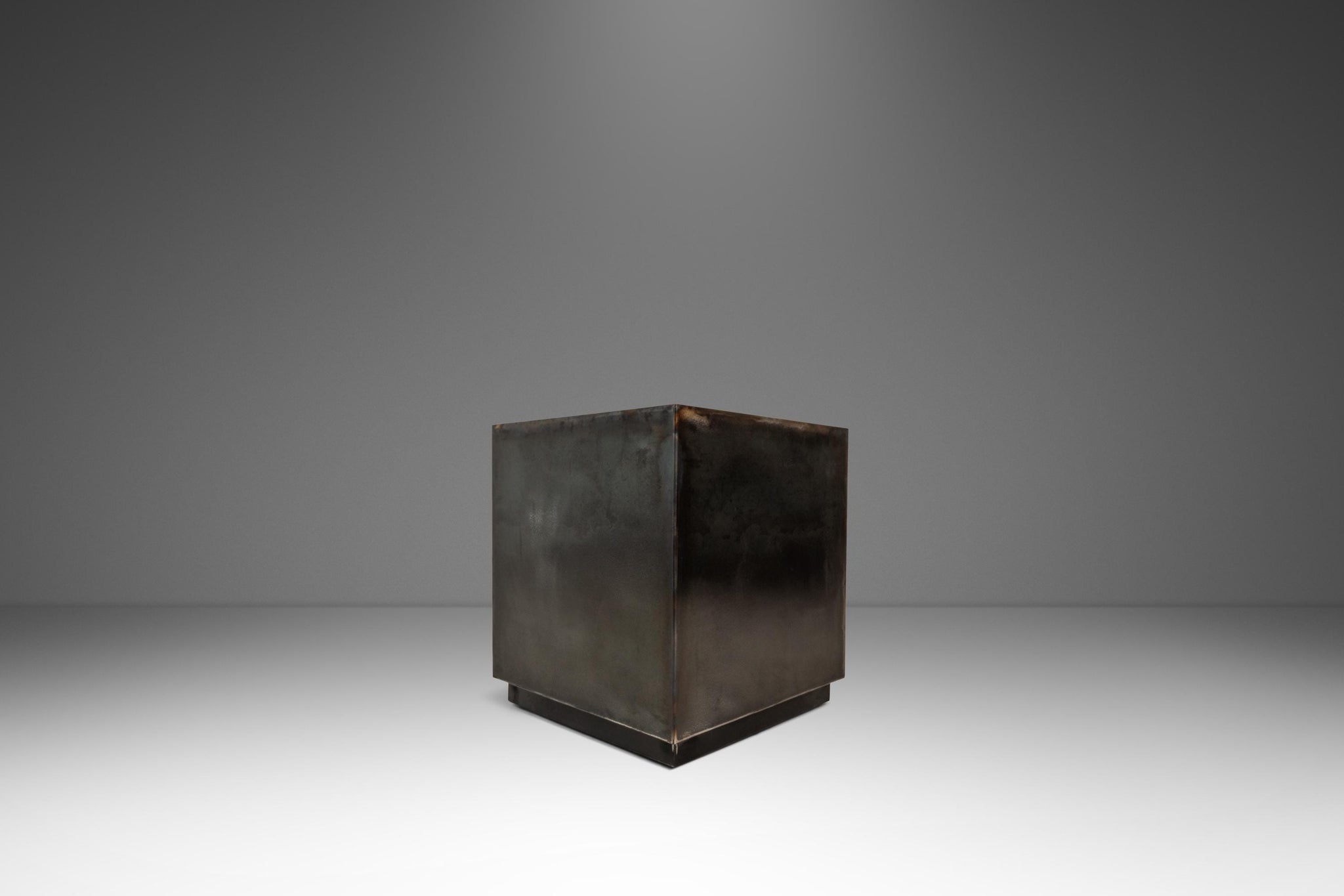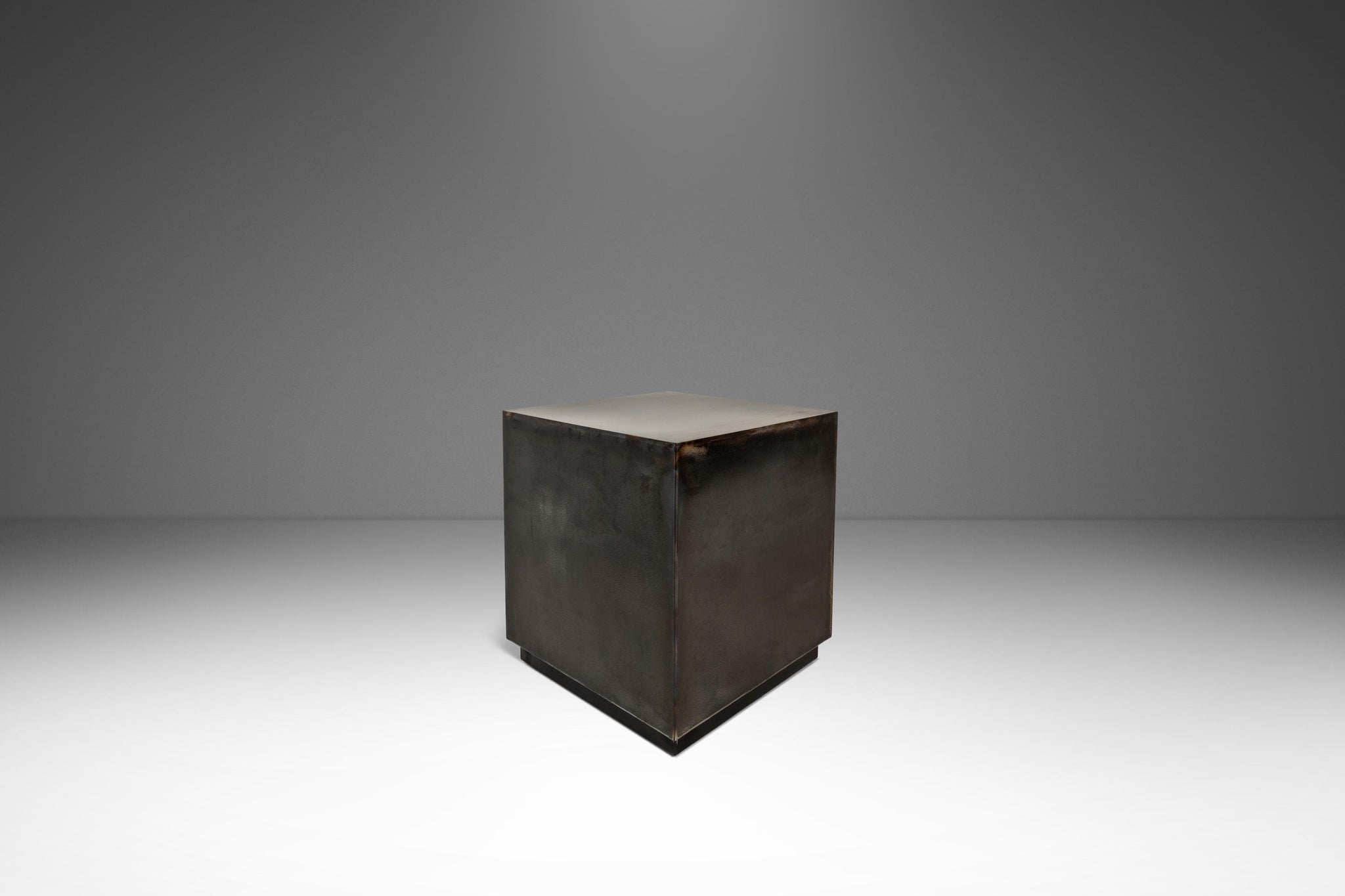 About: Introducing a sleek set of minimalist cube end tables cut from steel and replete with a splendid, character-rich patina. Ideal for designers searching for the perfect set of Brutalist tables that are sure to make a BOLD statement in any space they inhabit this stunning set can blend seamlessly against a myriad of design backdrops from Mid-Century Modern to Minimalism to Brutalism and everything in between. Able to function as pedestals this set can also serve well in studio settings.