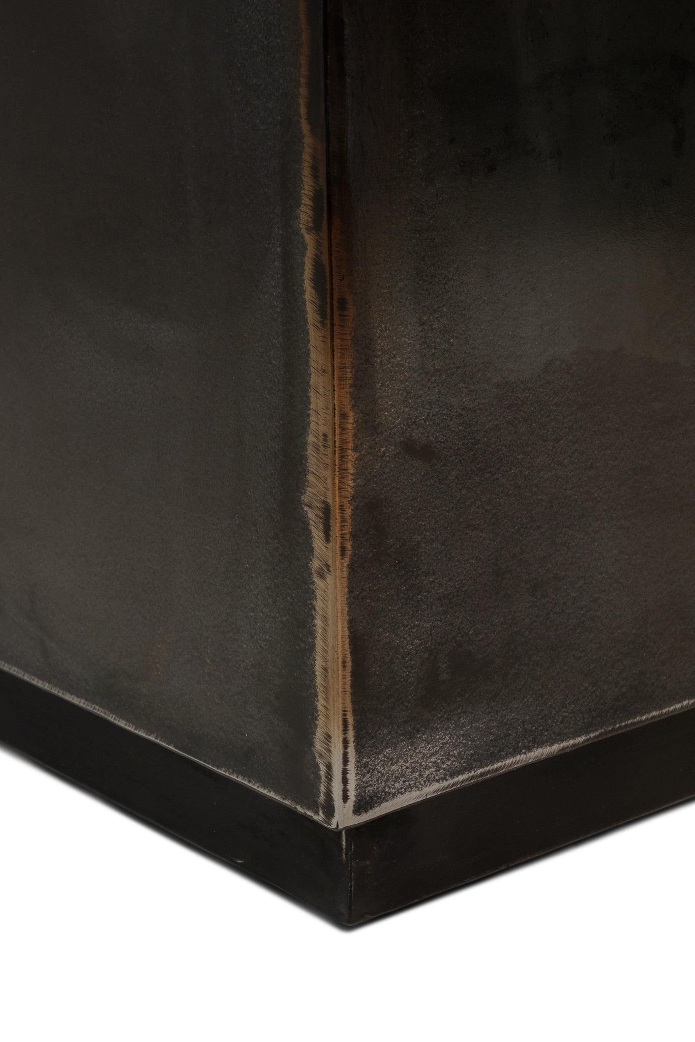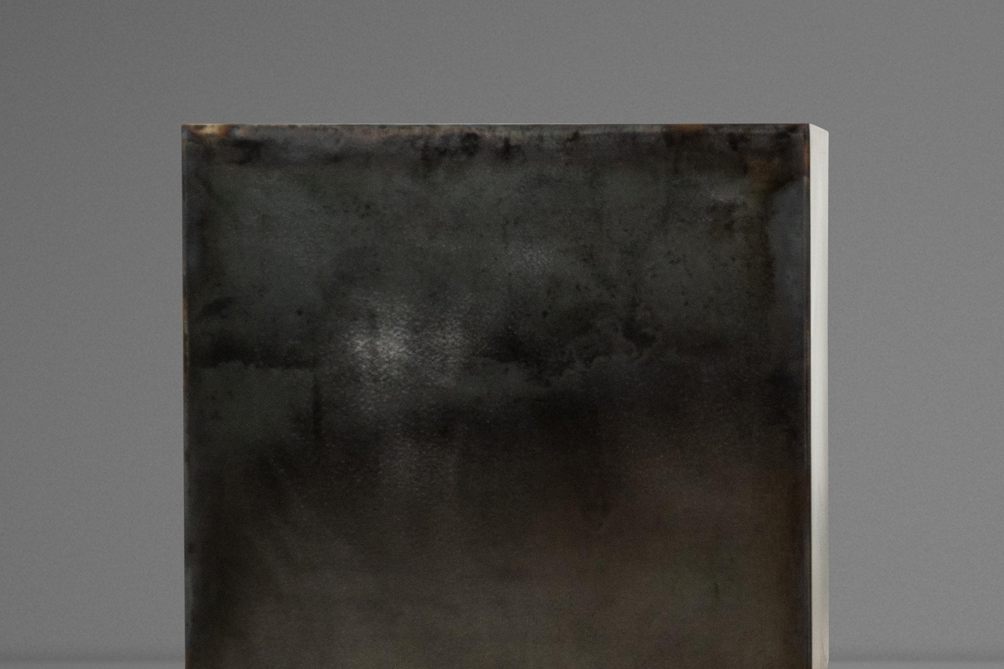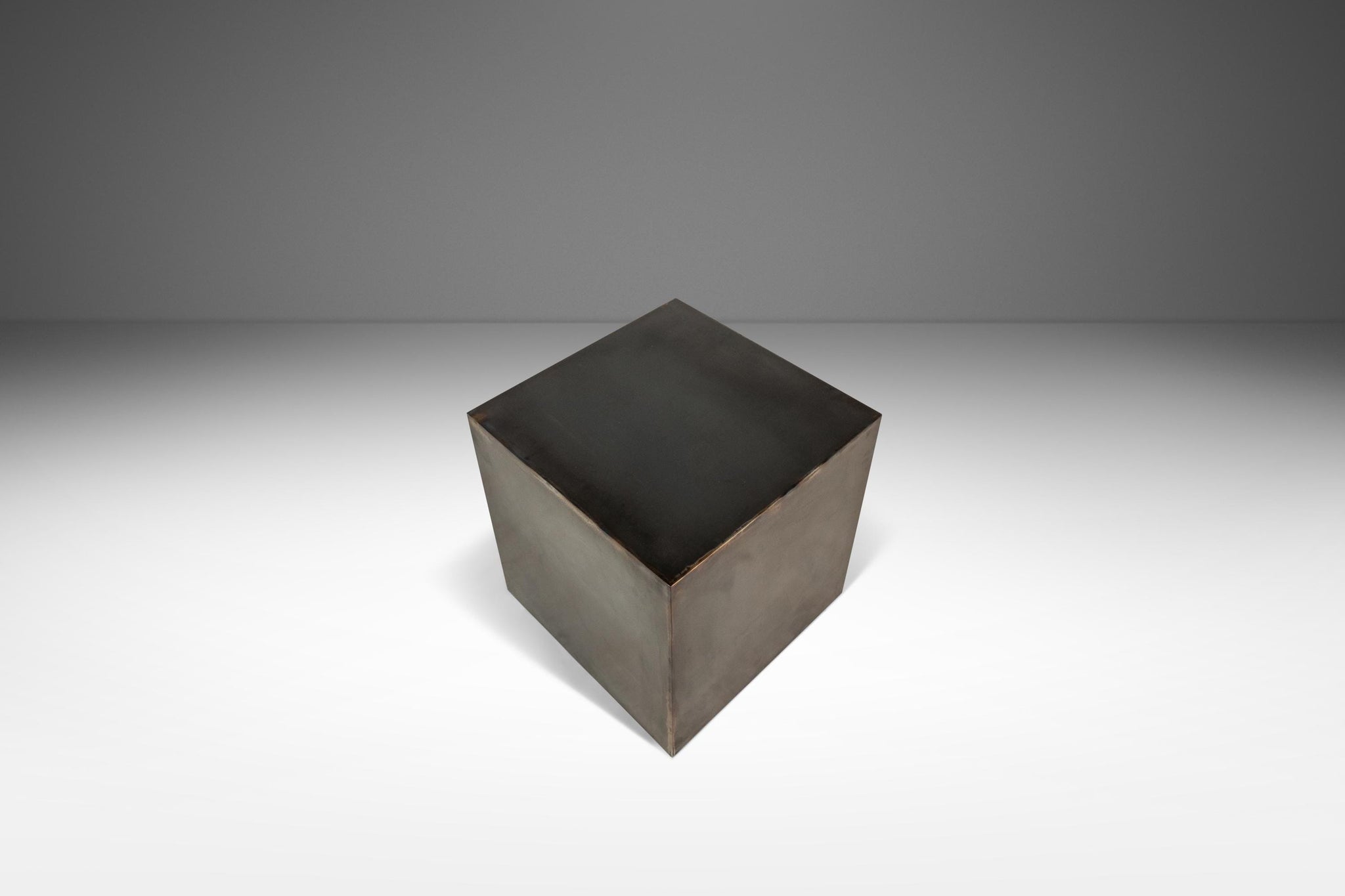 About: Introducing a sleek set of minimalist cube end tables cut from steel and replete with a splendid, character-rich patina. Ideal for designers searching for the perfect set of Brutalist tables that are sure to make a BOLD statement in any space they inhabit this stunning set can blend seamlessly against a myriad of design backdrops from Mid-Century Modern to Minimalism to Brutalism and everything in between. Able to function as pedestals this set can also serve well in studio settings.