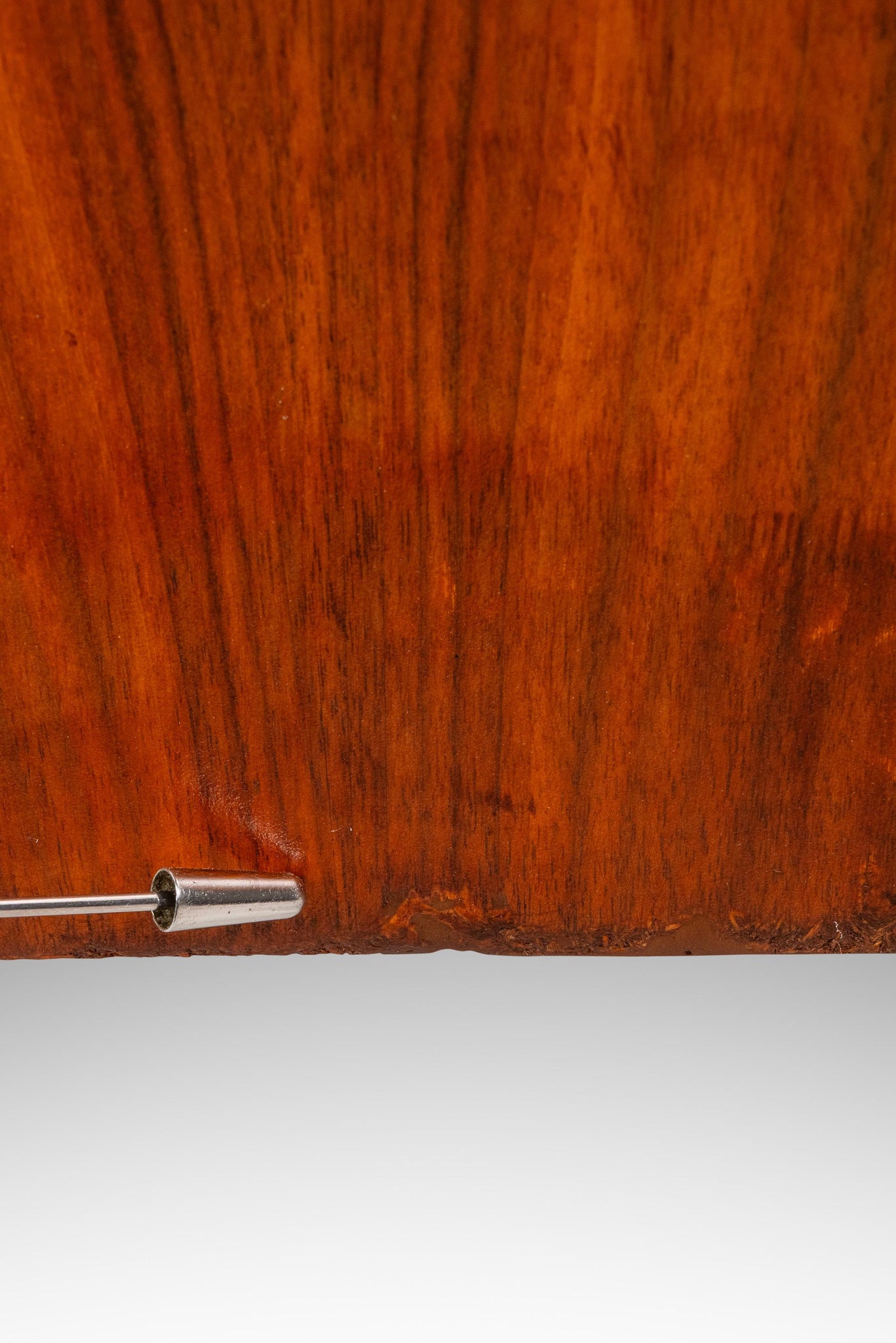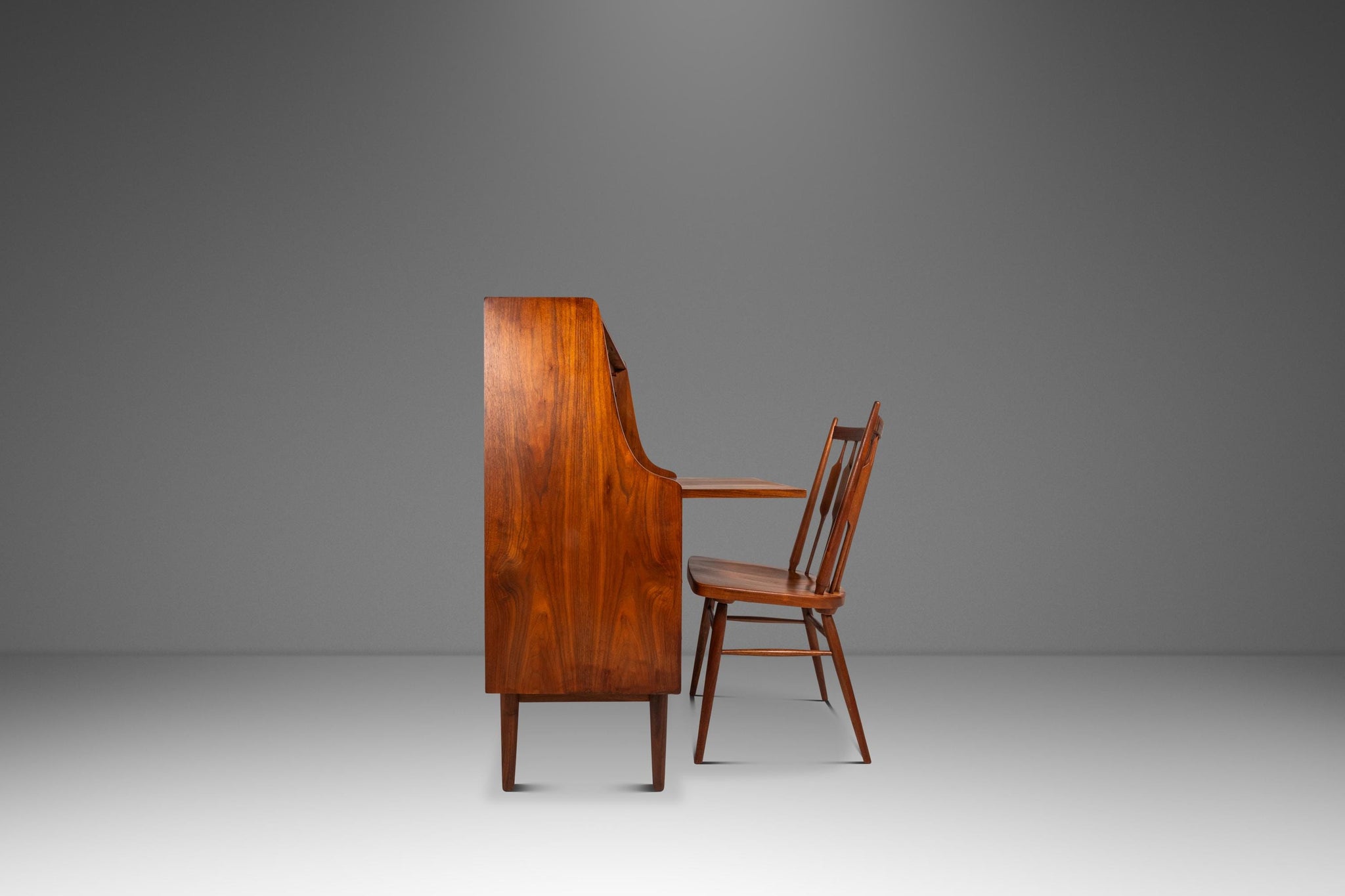 About: Introducing a freshly restored secretary desk designed in the 1960s by the influential Maurice Villency. Constructed from a mix of solid and veneered walnut, a rare choice amongst Danish furniture makers of the period, with exceptional old-growth woodgrains this aesthetically pleasing desk is captivating from every angel and features elegant details like the hand-carved solid walnut handles and inner drawer boxes constructed with intricate dovetail joinery.