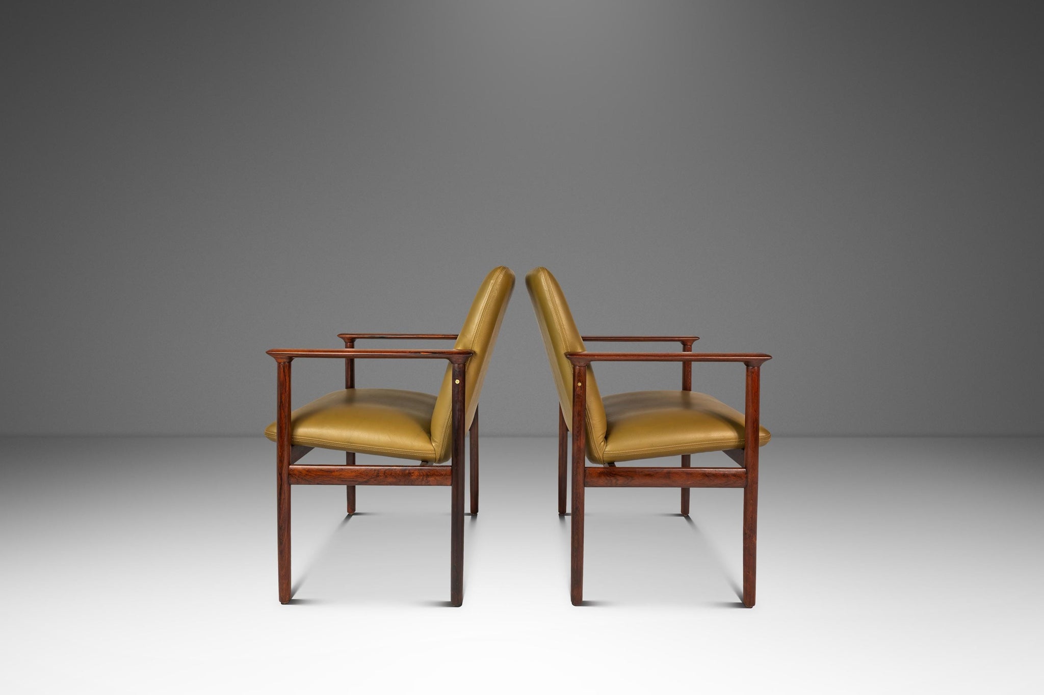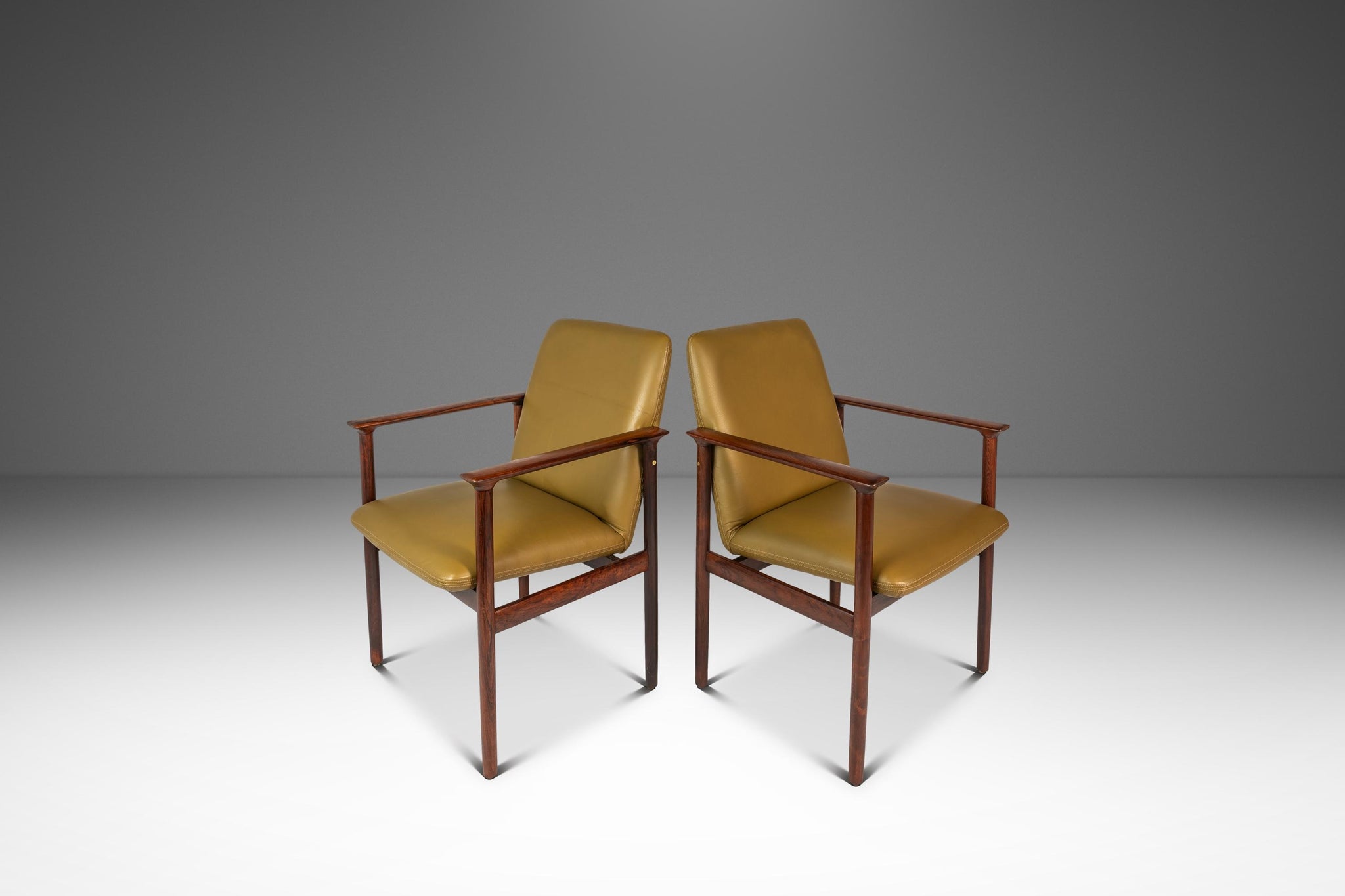 Title: Set of Two (2) Rare Mid-Century Scandinavian Modern Arm Chairs in Solid Rosewood & Leather by De Klerk & Sons, Netherlands, c. 1960s