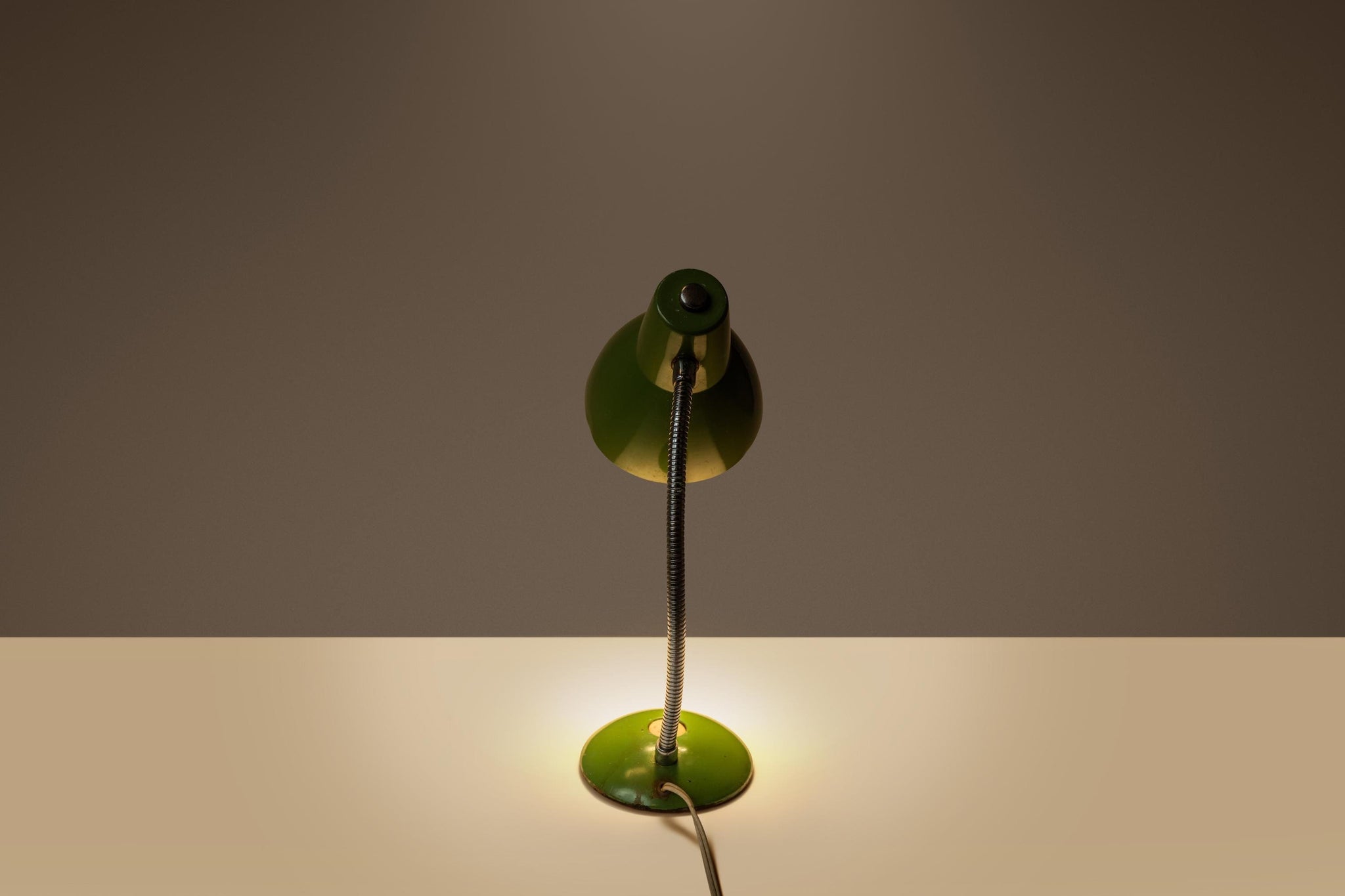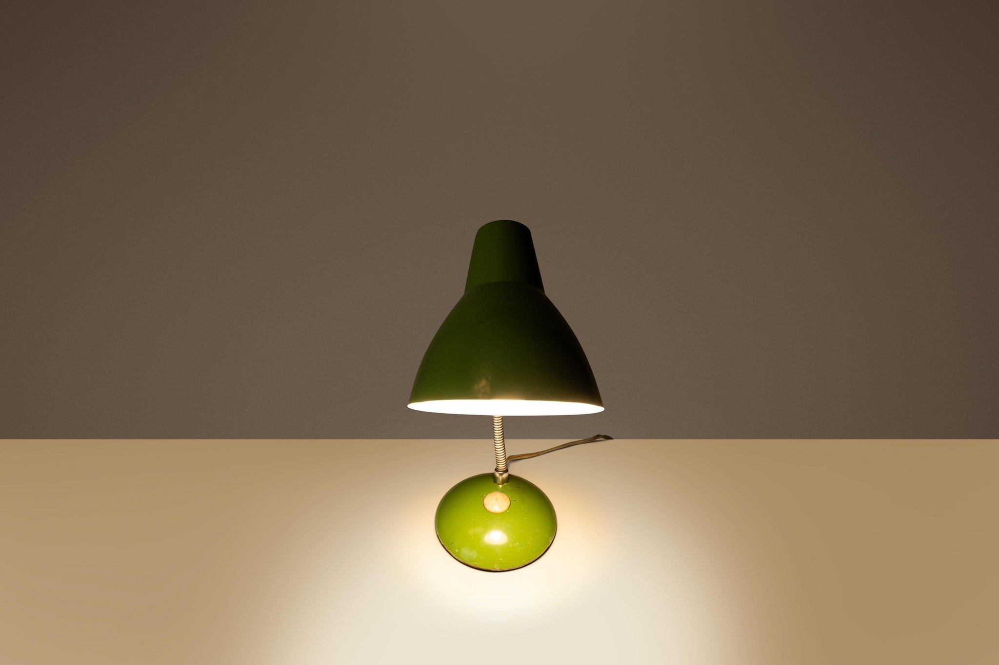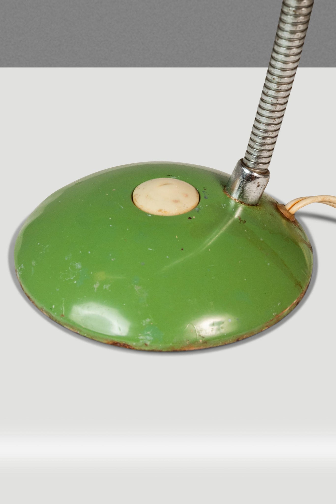 Title: Mid-Century Modern Industrial Patinaed Adjustable Height Desk Table Lamp in Army Green, c. 1960s