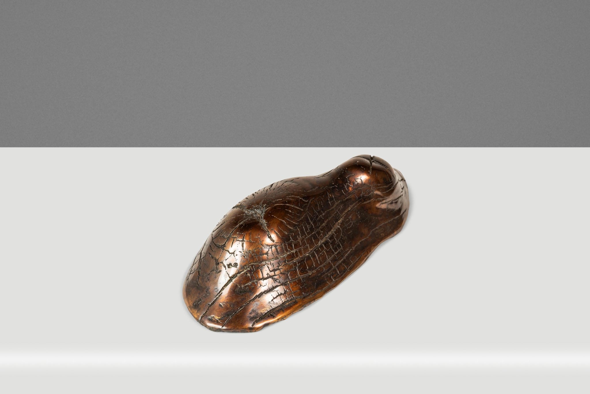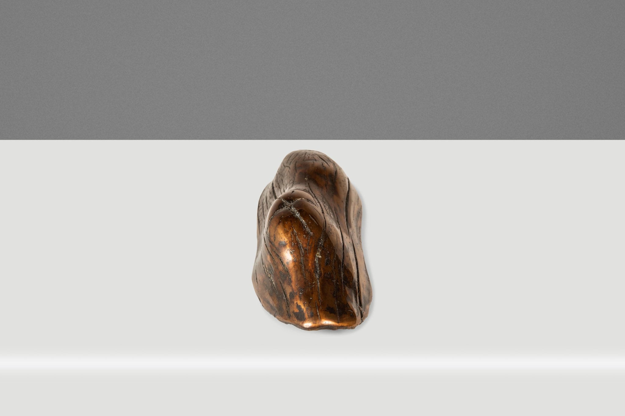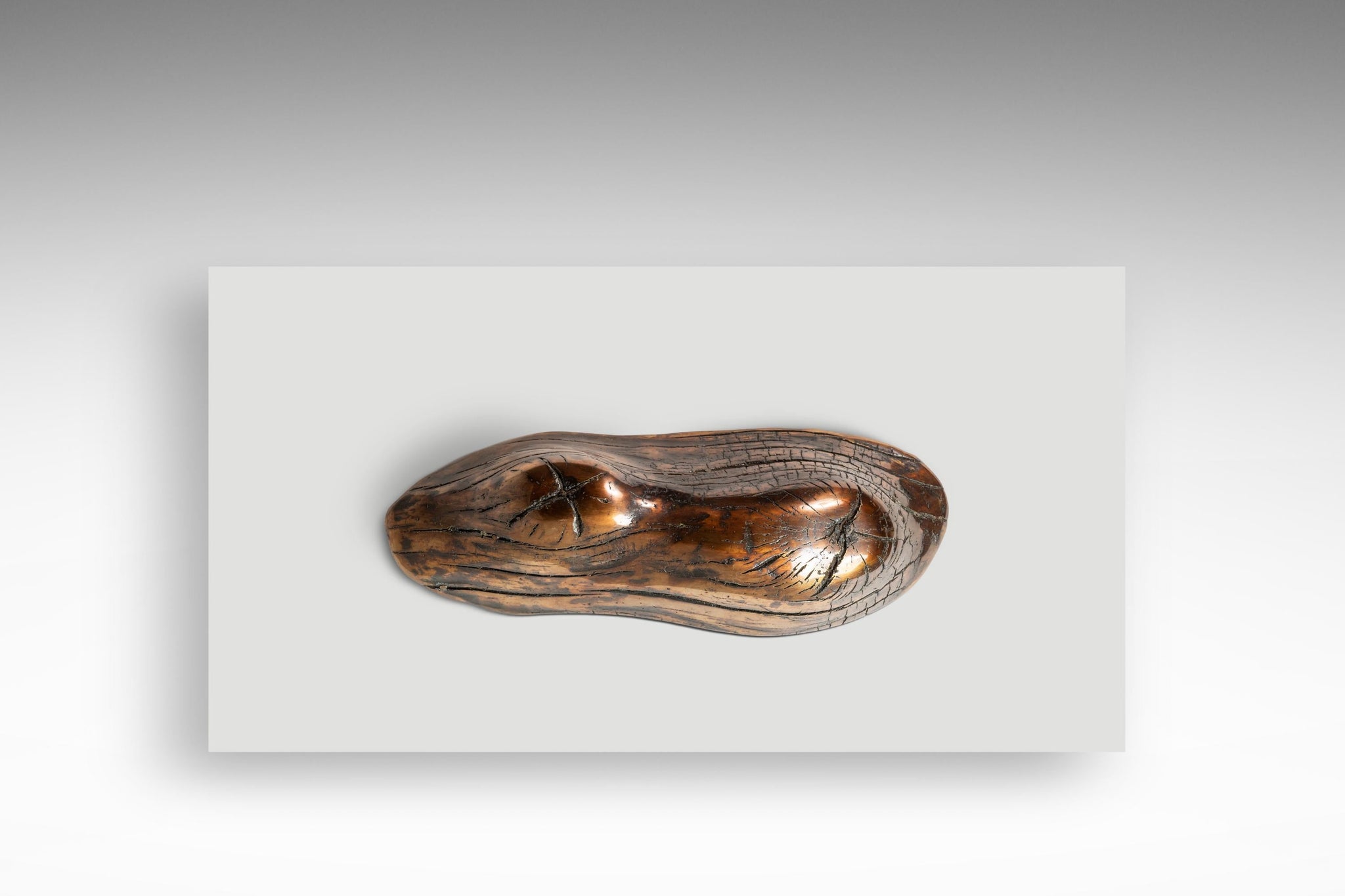 Designed and equipped to be hung on a wall this piece is perfectly balanced when free-hanging from the built in hook. This thought-provoking artwork - dubbed "New Beginnings" by the sculpturer, is highly interpretive - evoking a different reaction from every person who lays eyes on it. Beautifully proportioned, the organic shape of the once-living tree bark presents a natural softness whilst also being as hard as and constructed out of metal creating an altogether fascinating conceptual juxtaposition.