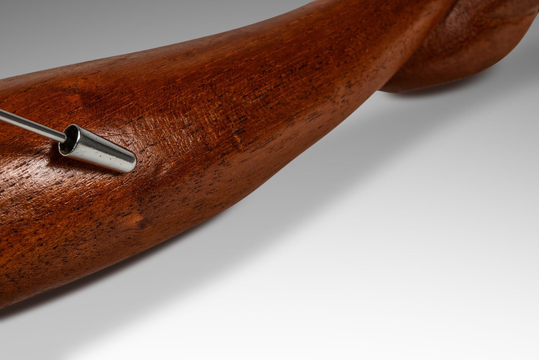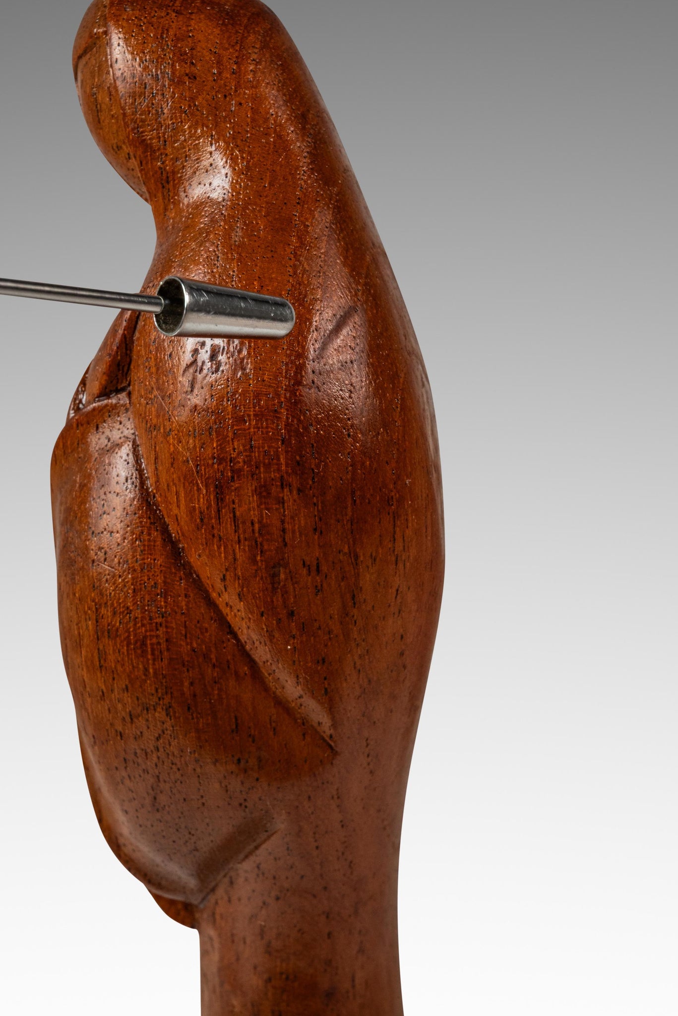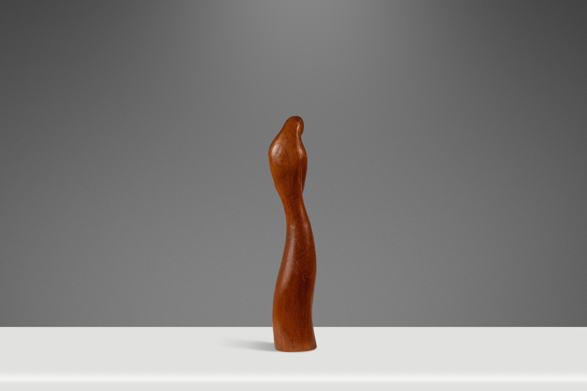 Condition Details: This exquisite hand-carved sculpture is in 100% original, vintage condition and has aged to perfection. The solid teak composition is in excellent shape showing only minor nicks and light scratches (shown in the detail photos provided) and the variegated woodgrains, unique to the hardwood species, are absolutely mesmerizing in natural light.