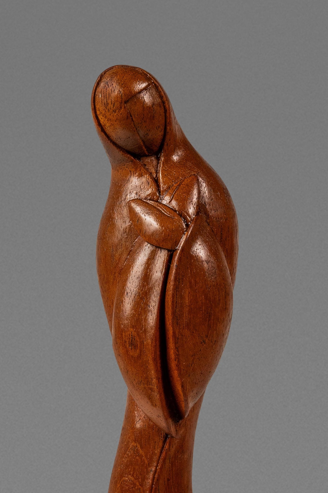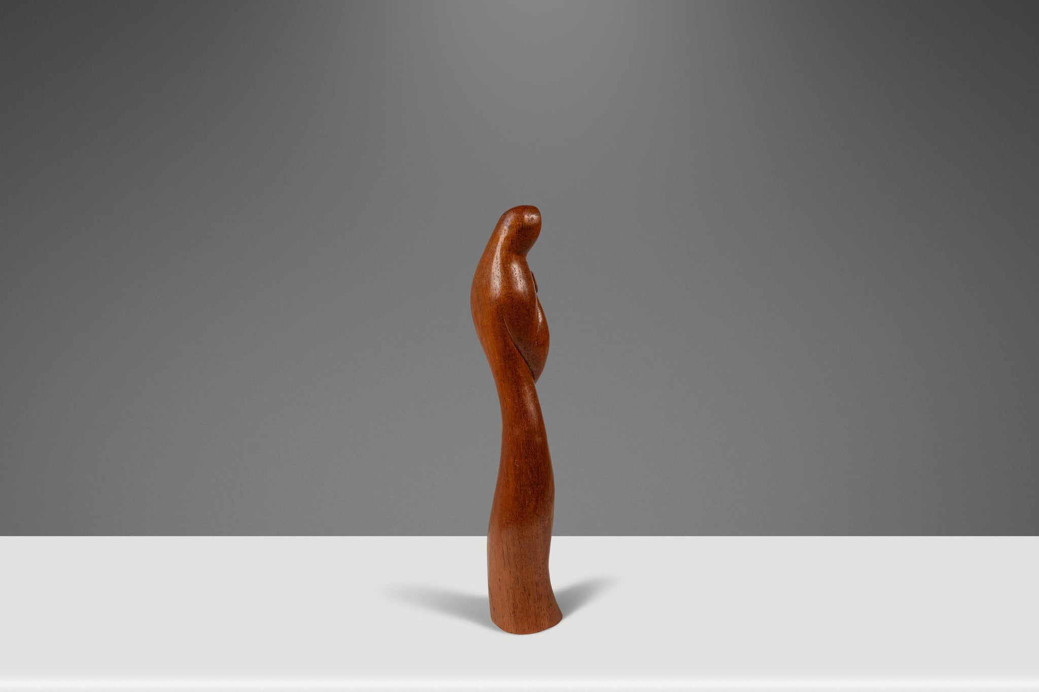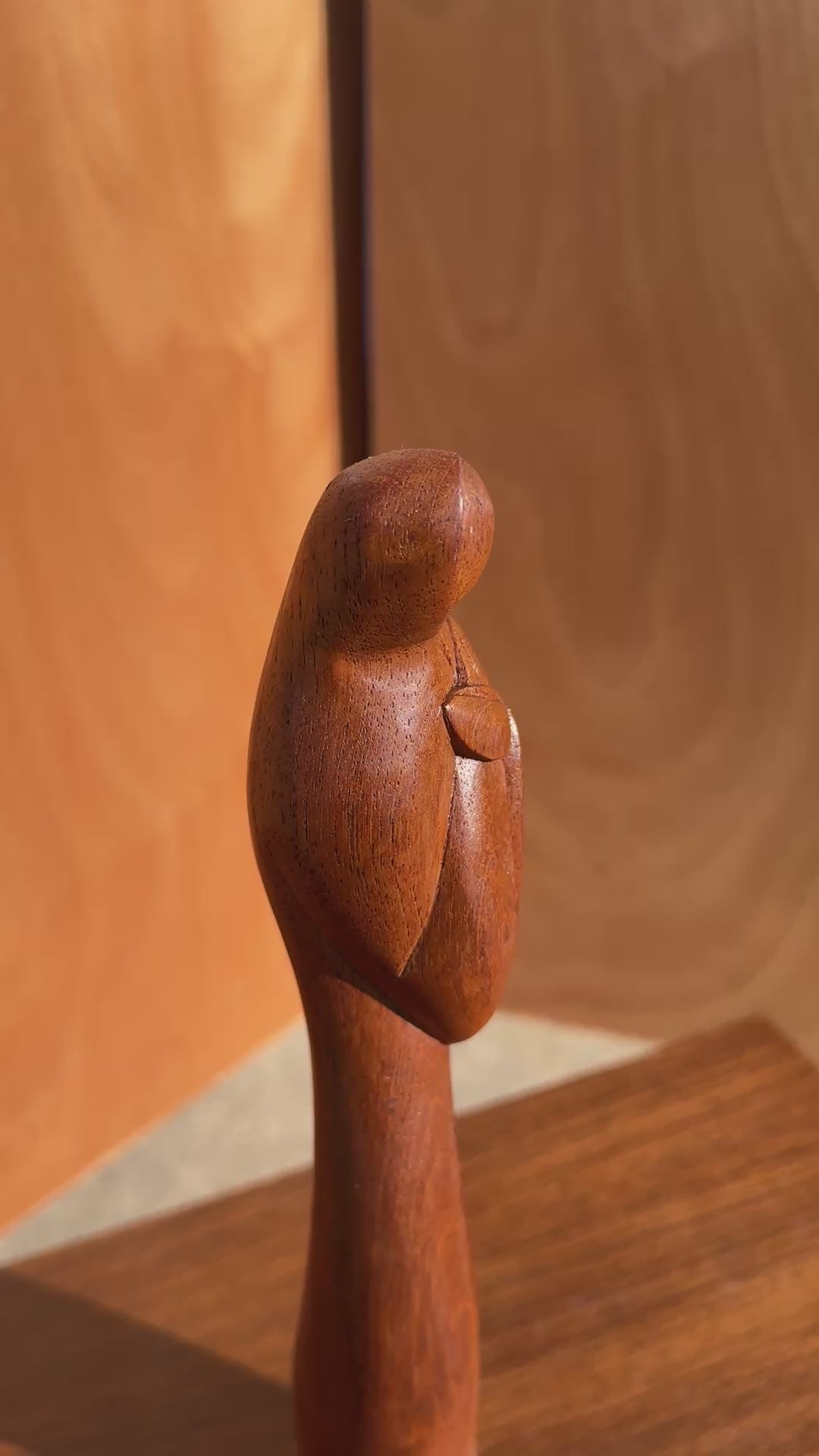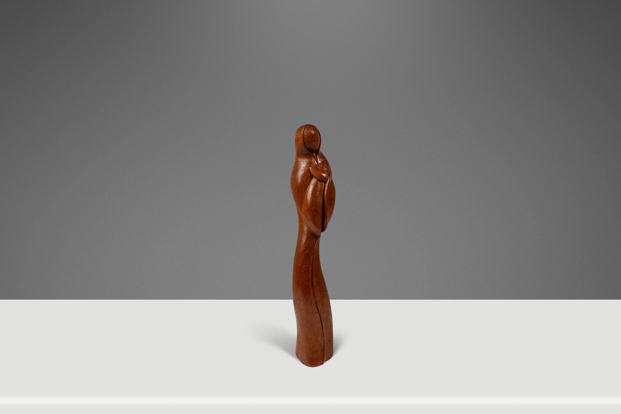 Title: Mid-Century Danish Modern Abstract Hand-Carved Sculpture Depicting Mother Mary in Solid Teak, USA, c. 1960s