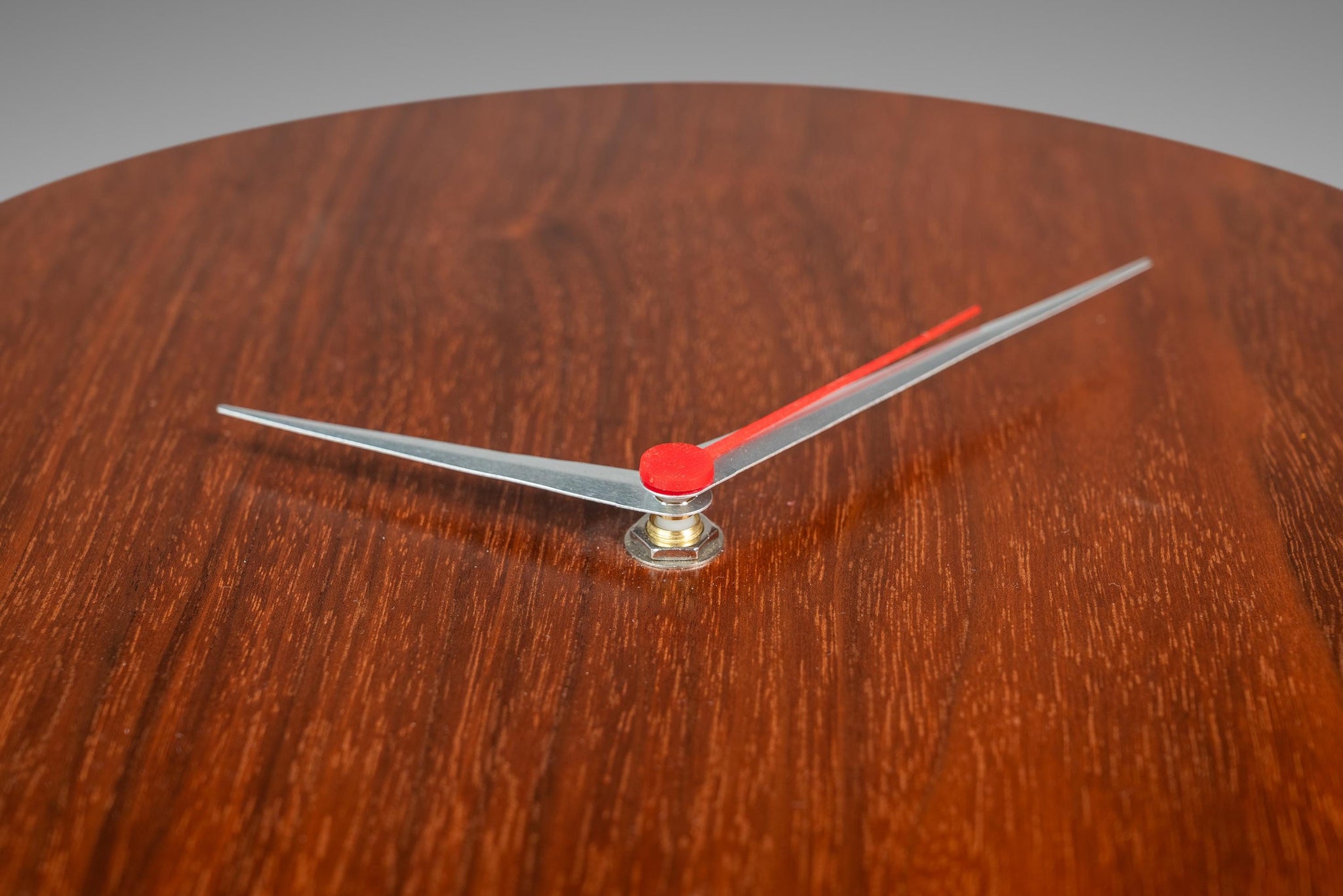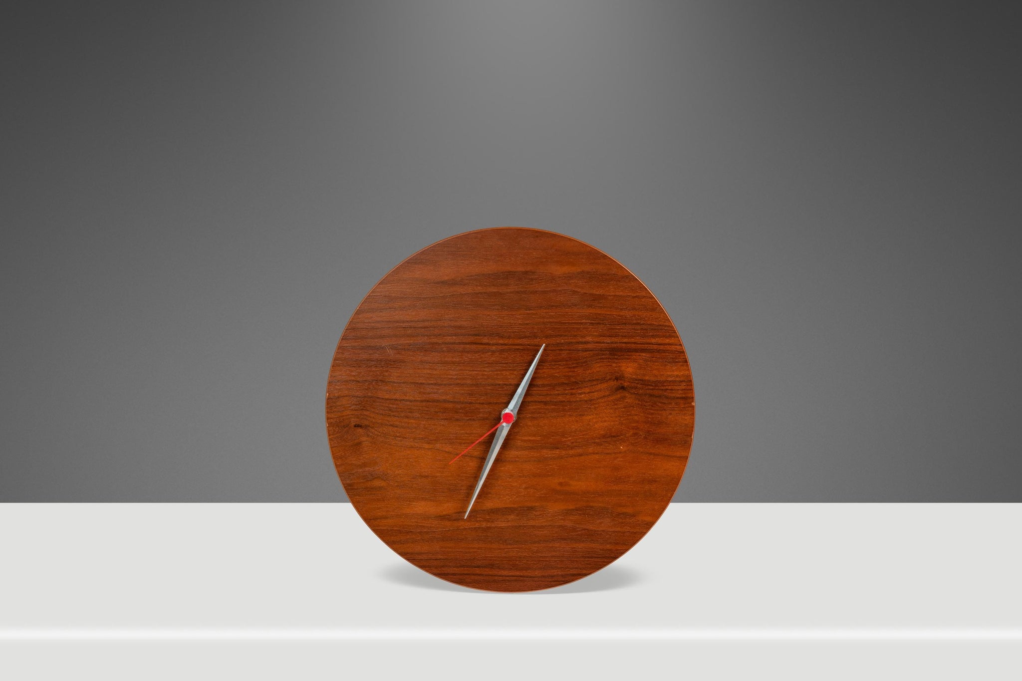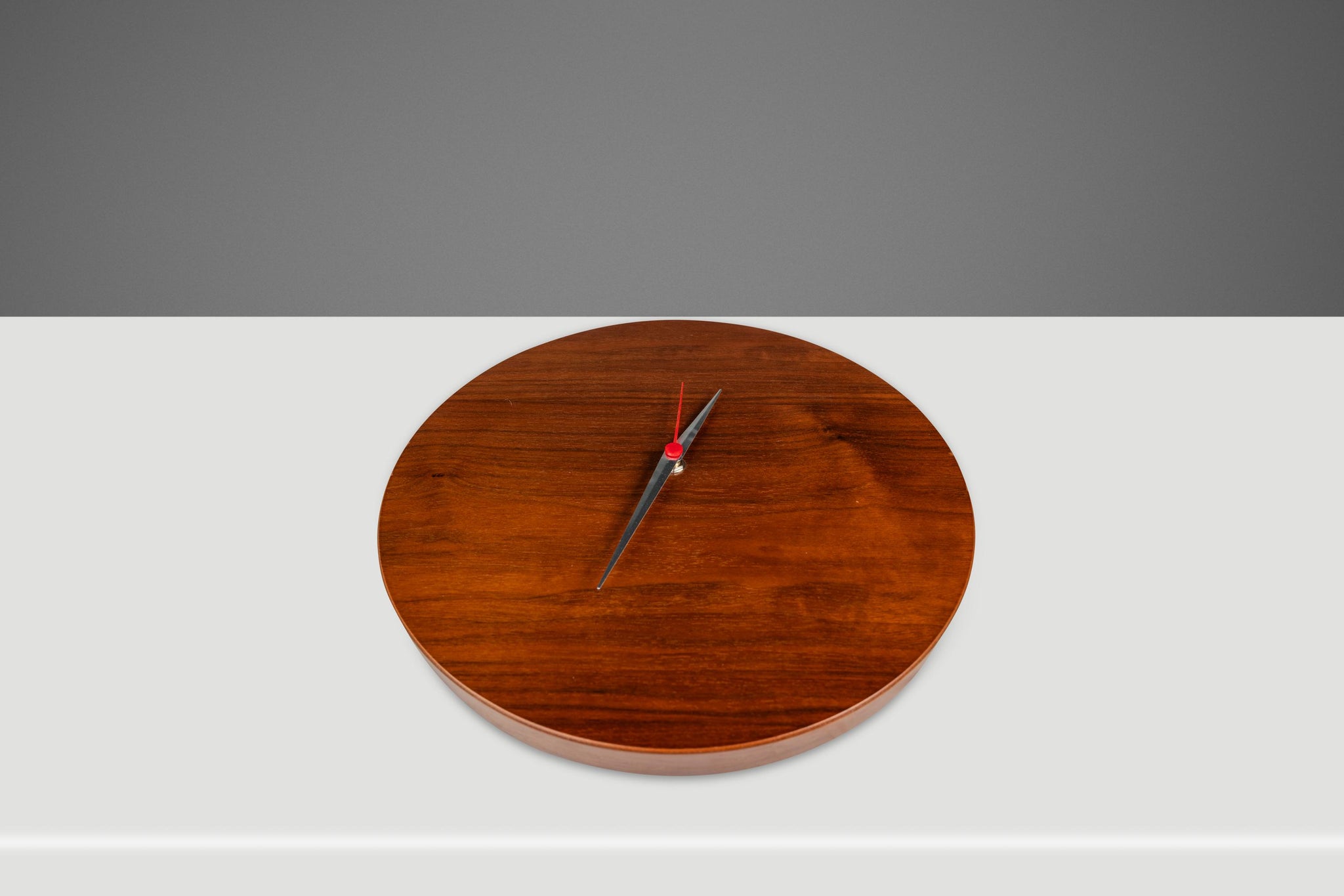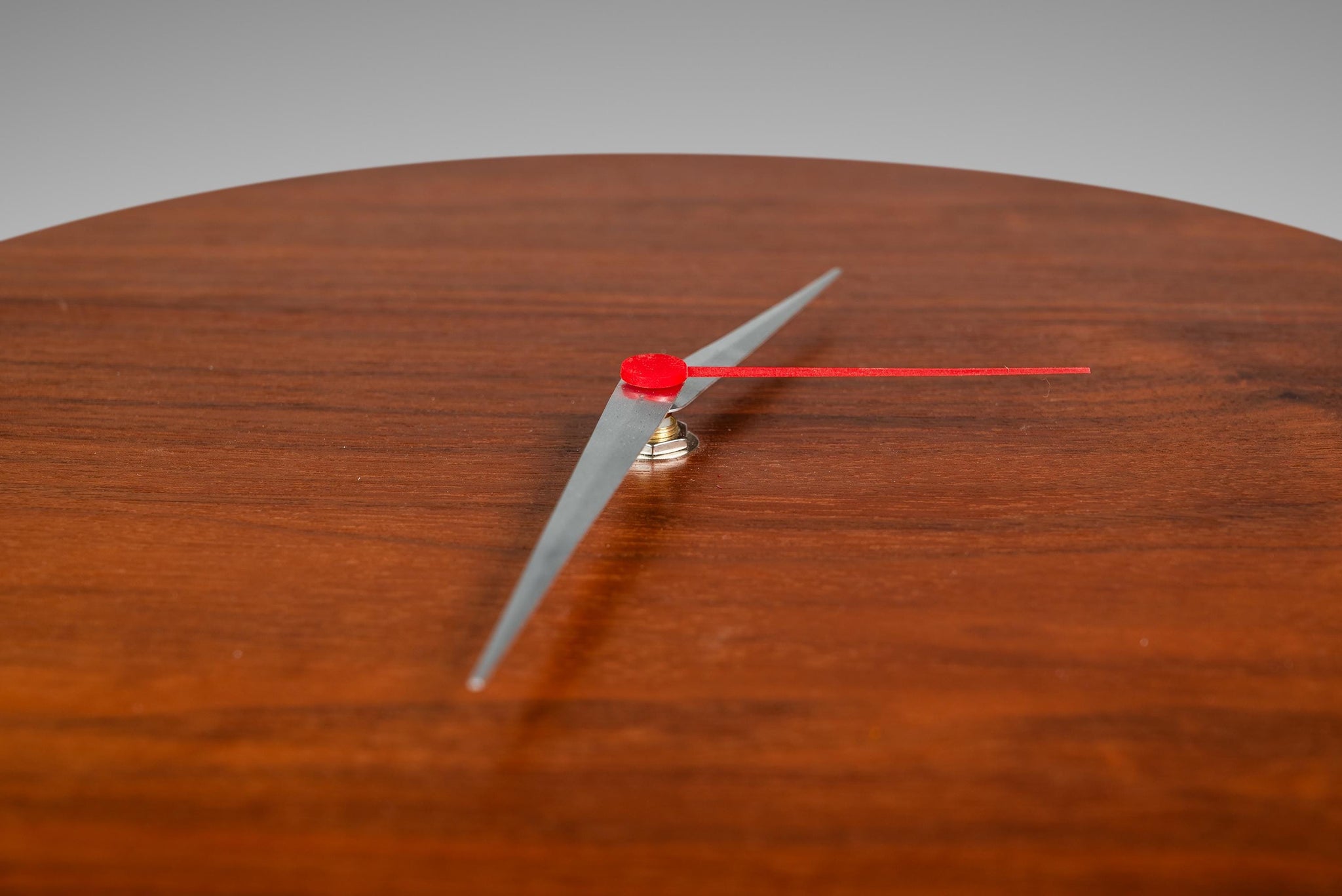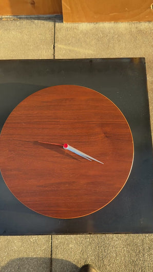 Condition Details: This stunning wall clock is in 100% original, vintage condition and has aged to perfection! The solid black walnut composition is in remarkably excellent condition given it's age showing only minor nicks and light surface scratches (all of which can be seen in the detail photos provided). The aluminum hands all function exactly as they should and the clock keeps time.