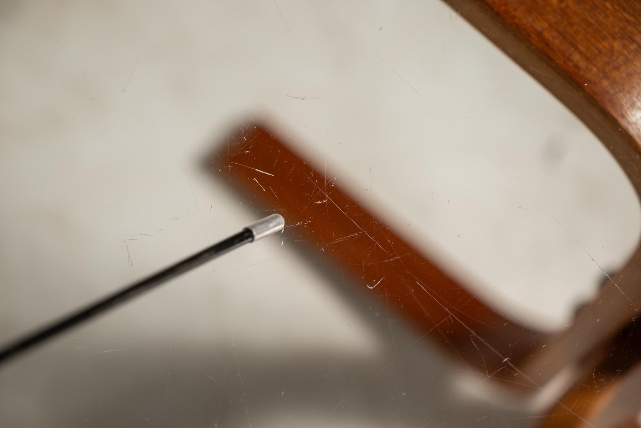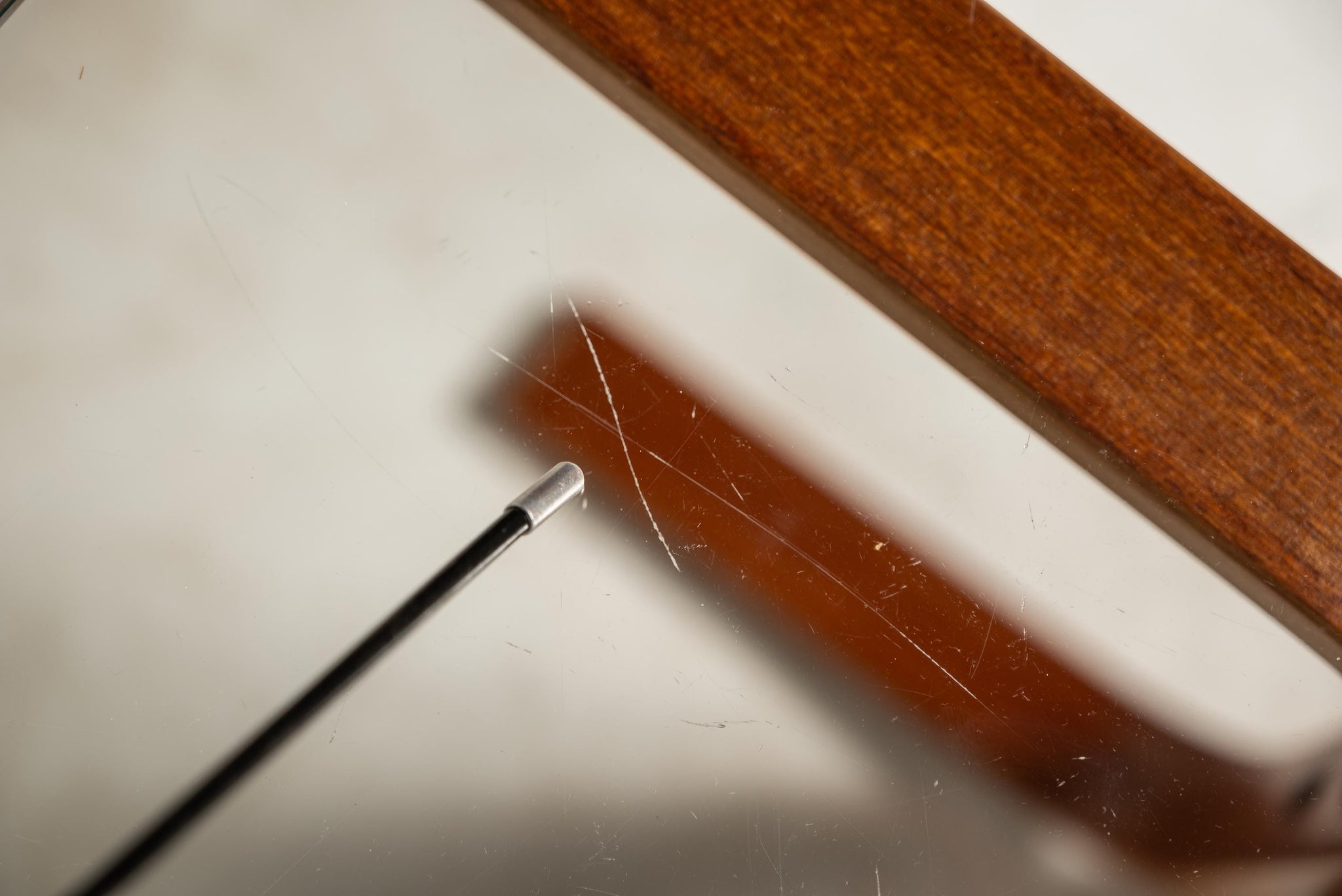The original, thick-cut glass topper is also in very good condition showing only surface scratches (which can also be seen in the photos provided) but showing no chips, cracks or other damage whatsoever. If desired a new glass top can be cut at cost to your specific dimensions. Please message us prior to checkout to discuss options and pricing.