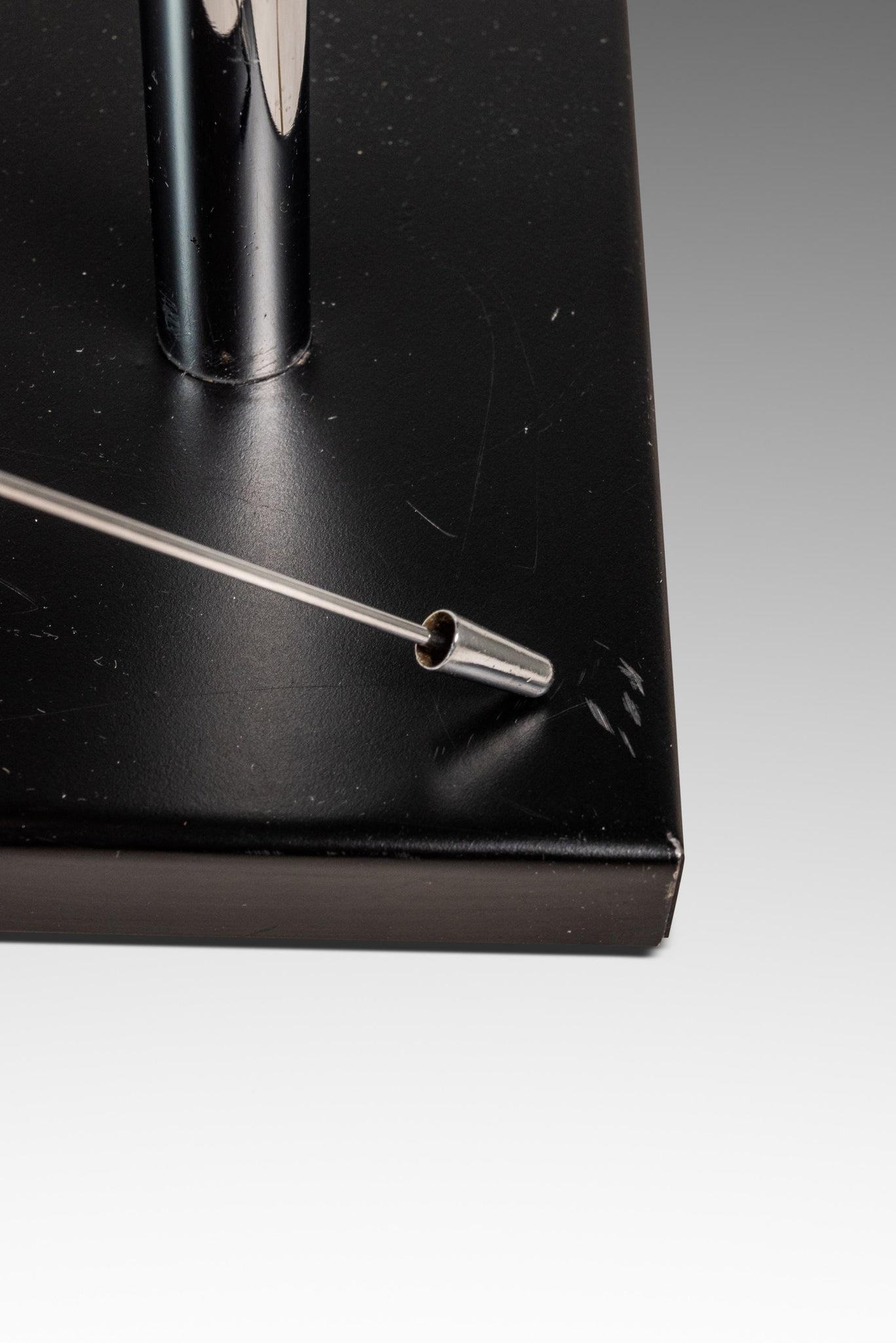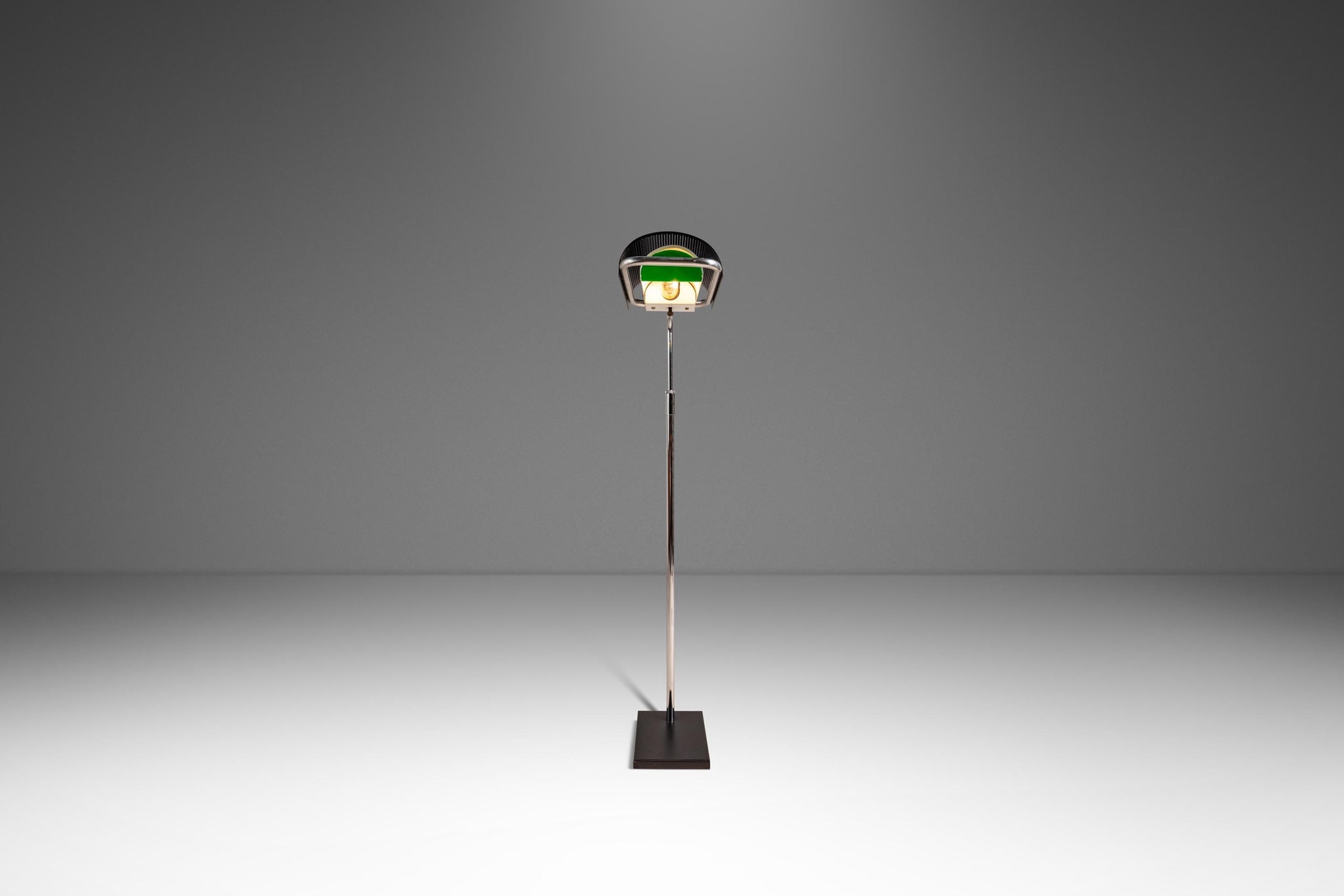 Condition Details: This iconic set of "Eyeshade" floor lamps is in 100% original, vintage condition and has aged to perfection! The most visible signs of wear are mostly relegated to the steel bases which show some scratches (shown in the detail photos provided). With that said the only other wear present is small surface scratches in the chrome necks and lamp handles (again shown in the detail photos provided).
