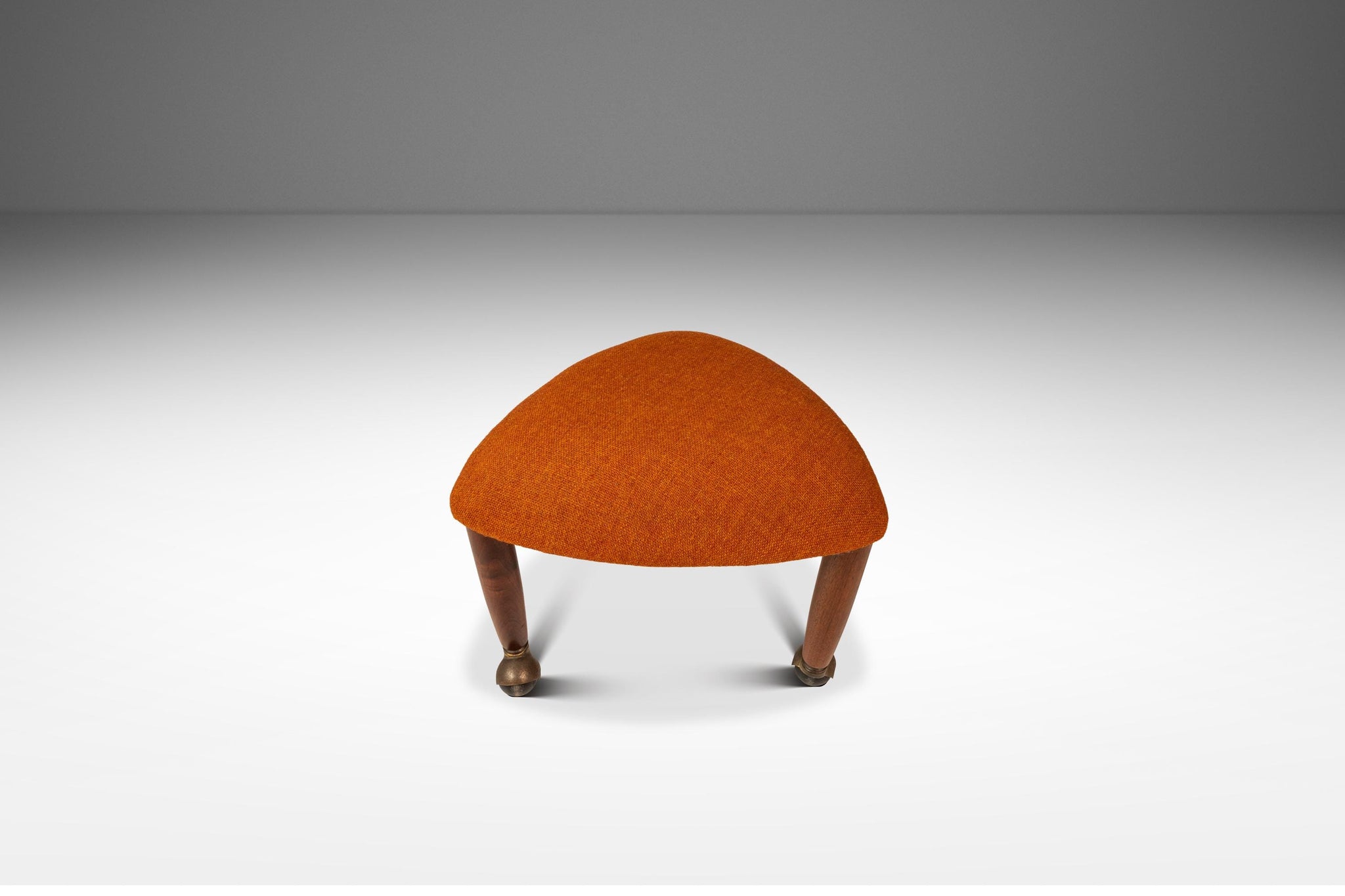 About: Designed by the incomparable Adrian Pearsall, this iconic set of four "Trifecta" rolling stools is the epitome of American Mid-Century Modern Design. Featuring the only original knit polyester fabric in a vintage burnt orange tone, new medium density foam for maximum comfort and longevity and hand-polished solid walnut legs (again in excellent original condition) this iconic set of stools is a collector's dream.