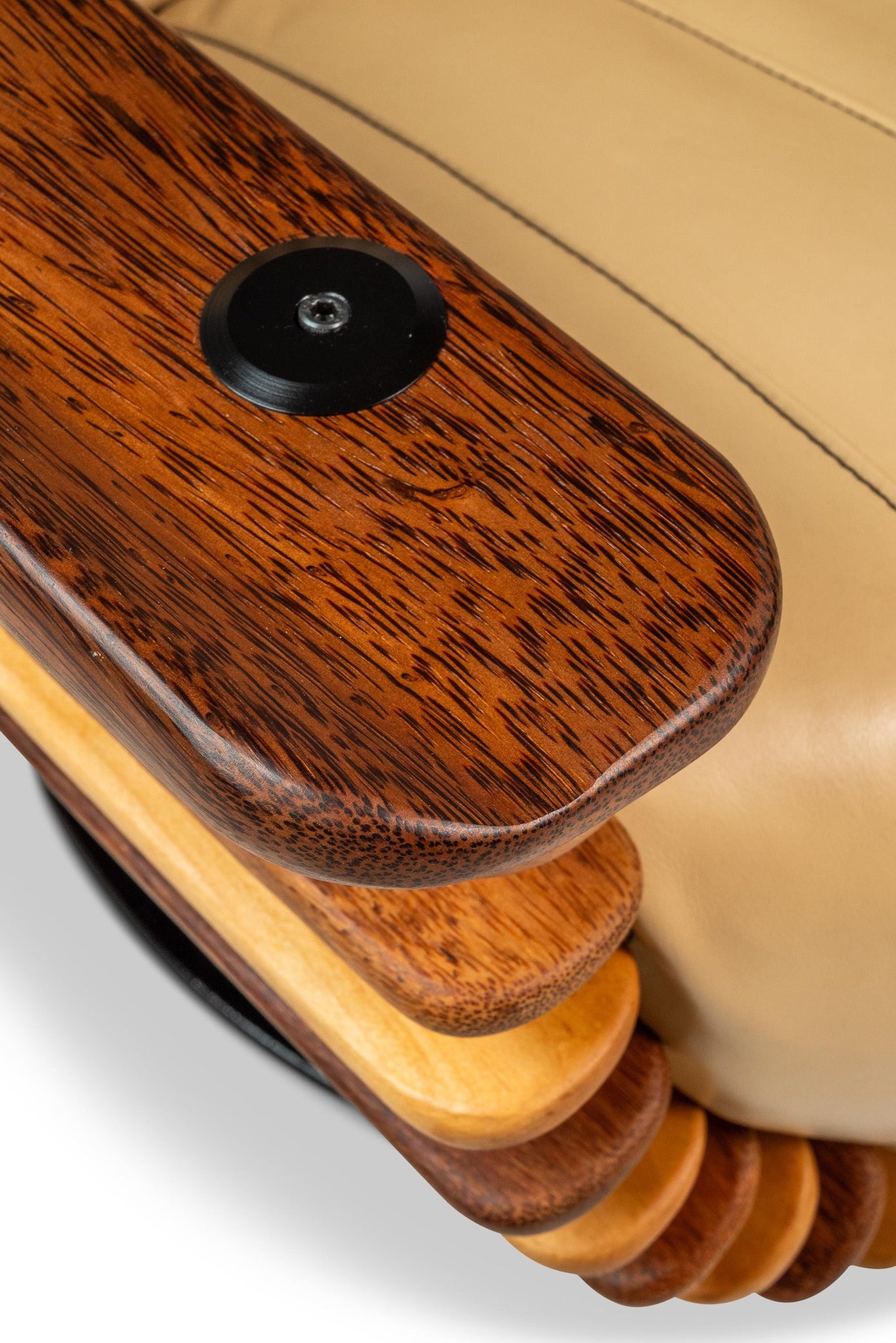 Pacific Green is a sustainable furniture company based in Australia that was founded in 1973 and continues to produce small batch, hand-made pieces of the highest quality and this extraordinary chair proves that. Pioneers in using palmwood for furniture construction Pacific Green's founders discovered that palm stems are exceptionally hard and durable, yet flexible enough to withstand cyclones. In the 1980s the founded the world’s first factory dedicated to the coconut palm after discovering vast abandoned plantations of coconut palm trees, which were commercially planted in the early-1900s and had reached the end of their productive fruiting.