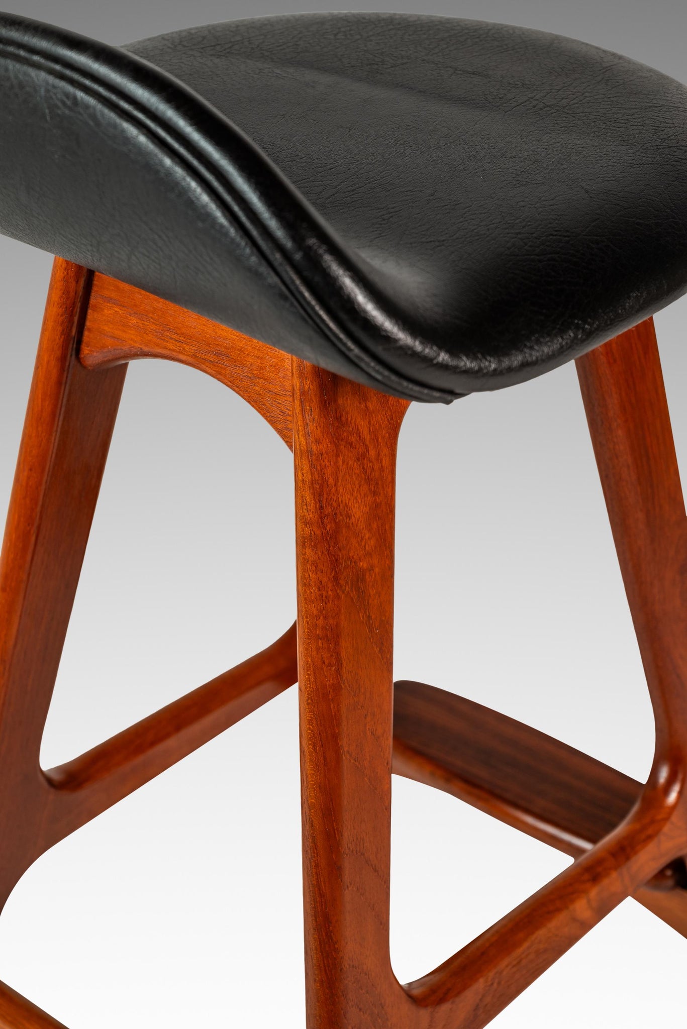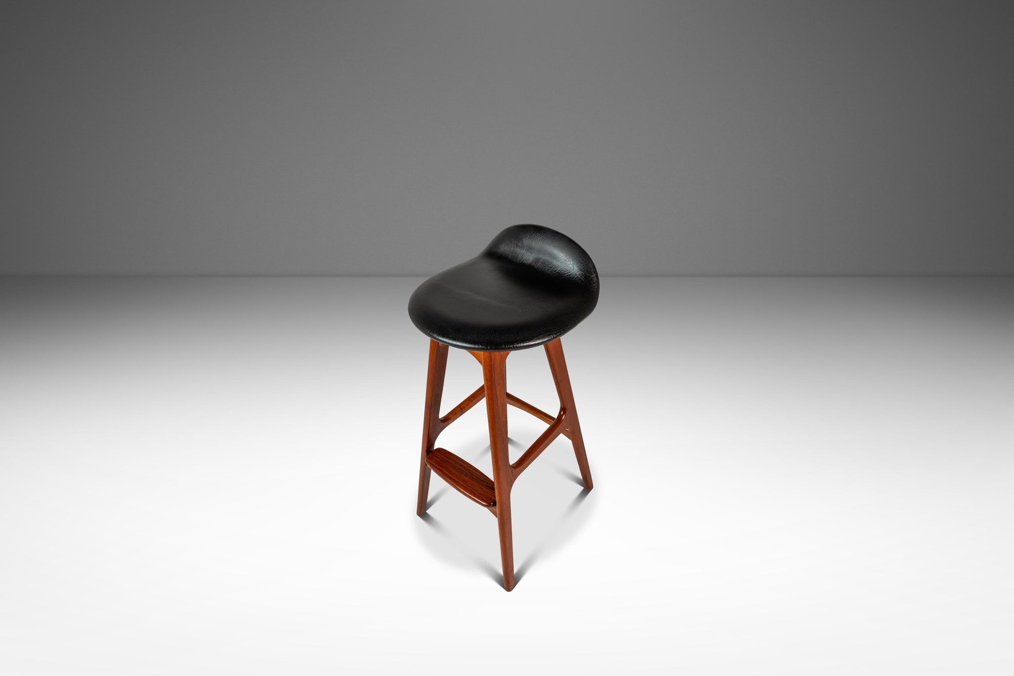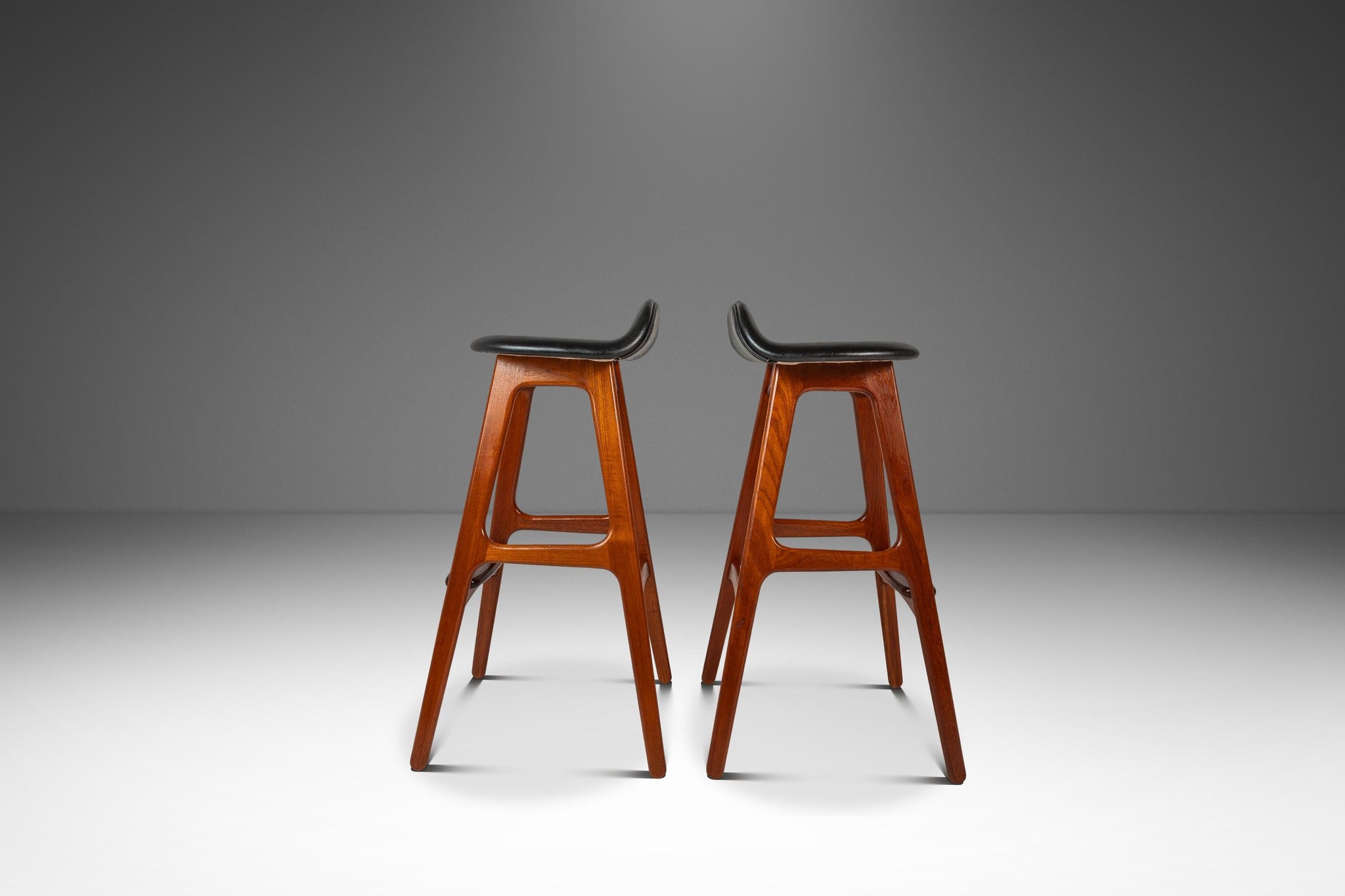 Condition Details: This limited set of OD-61 counter height bar stools by Erik Buch are in 100% original, vintage condition. The solid teak legs show some nicks, scratches and light gouges (the worst of which can be seen in the detail photos provided).