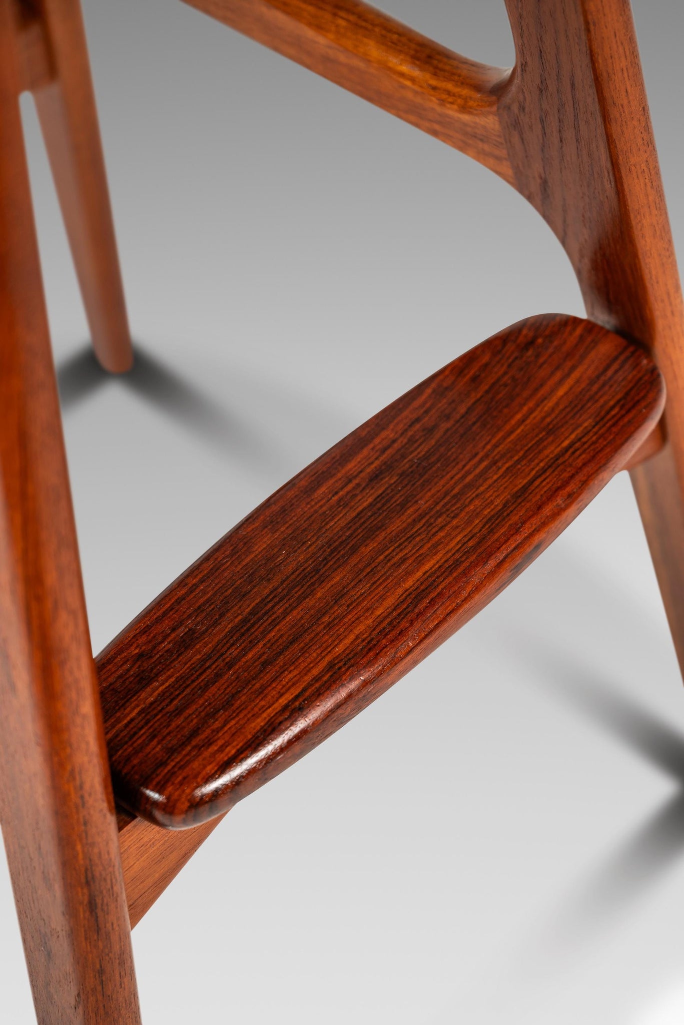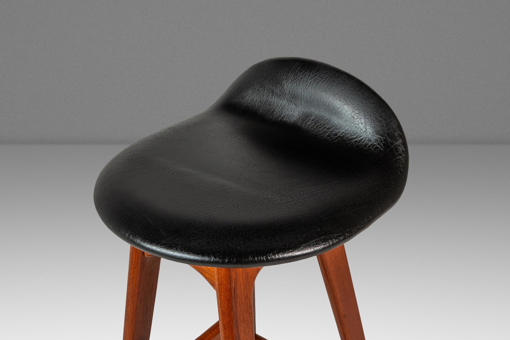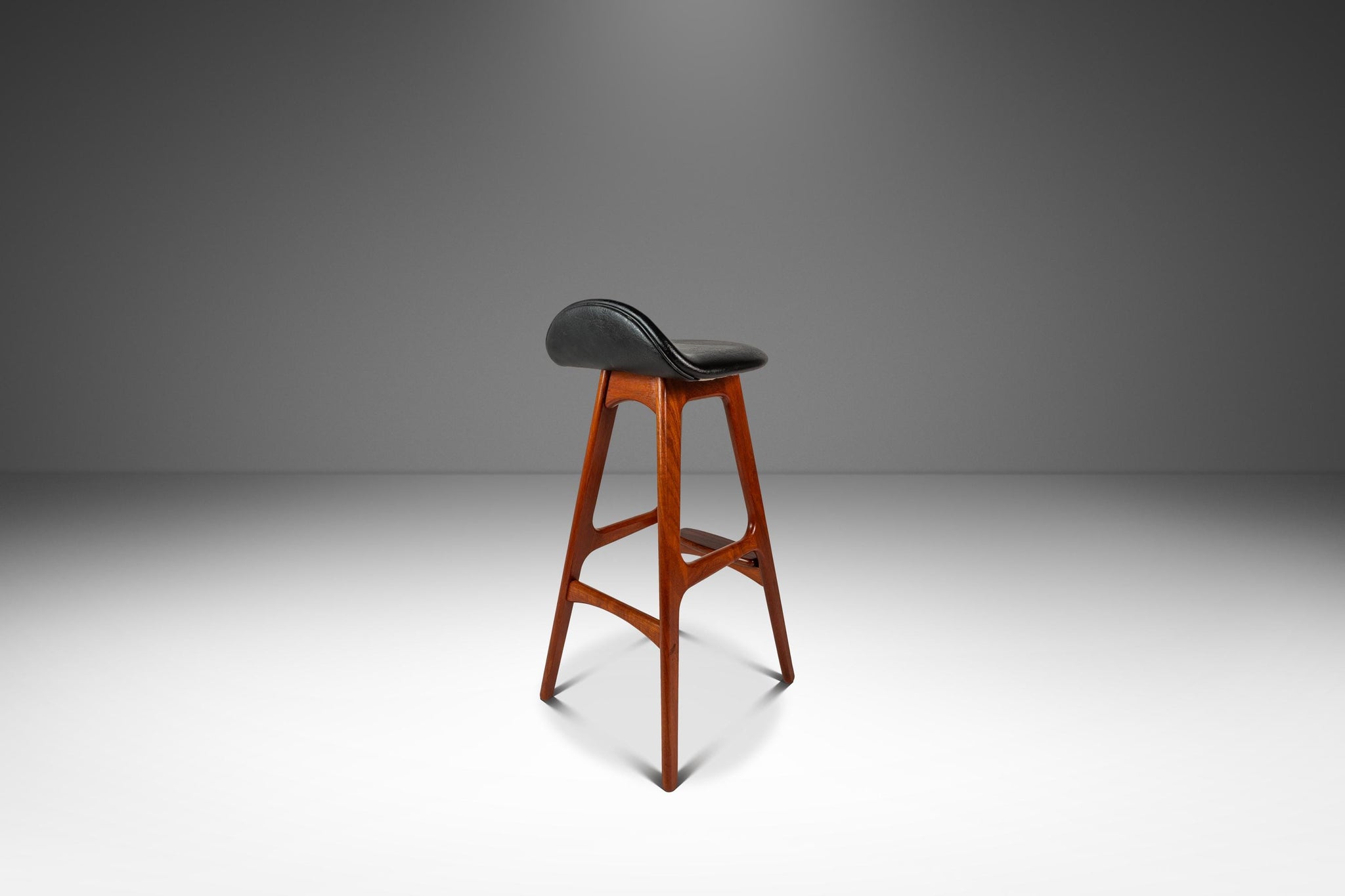 Condition Details: This limited set of OD-61 counter height bar stools by Erik Buch are in 100% original, vintage condition. The solid teak legs show some nicks, scratches and light gouges (the worst of which can be seen in the detail photos provided).