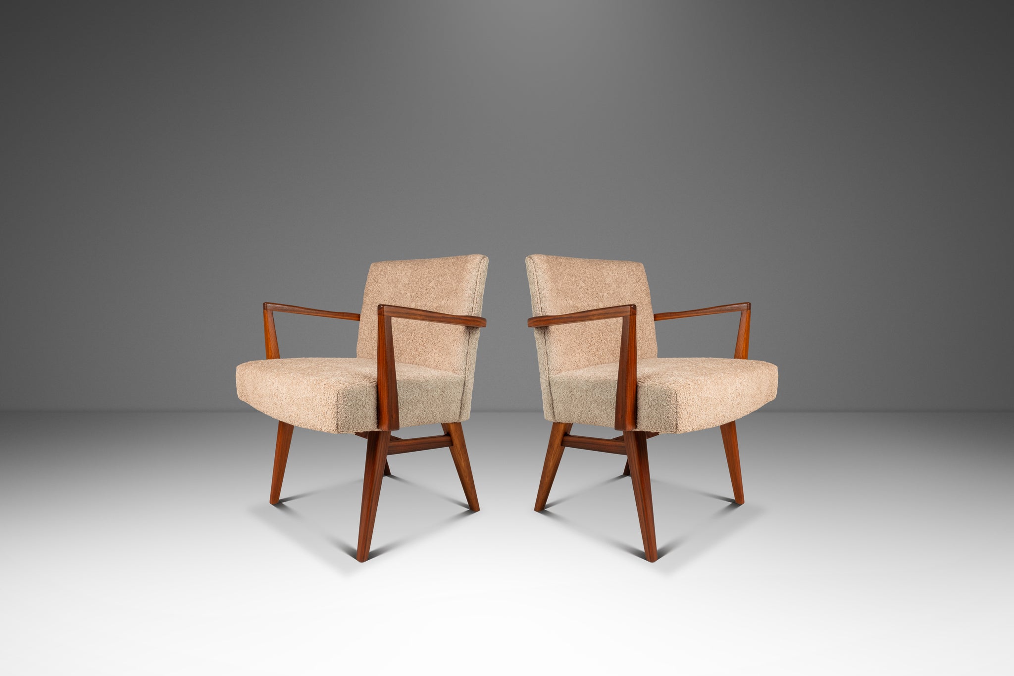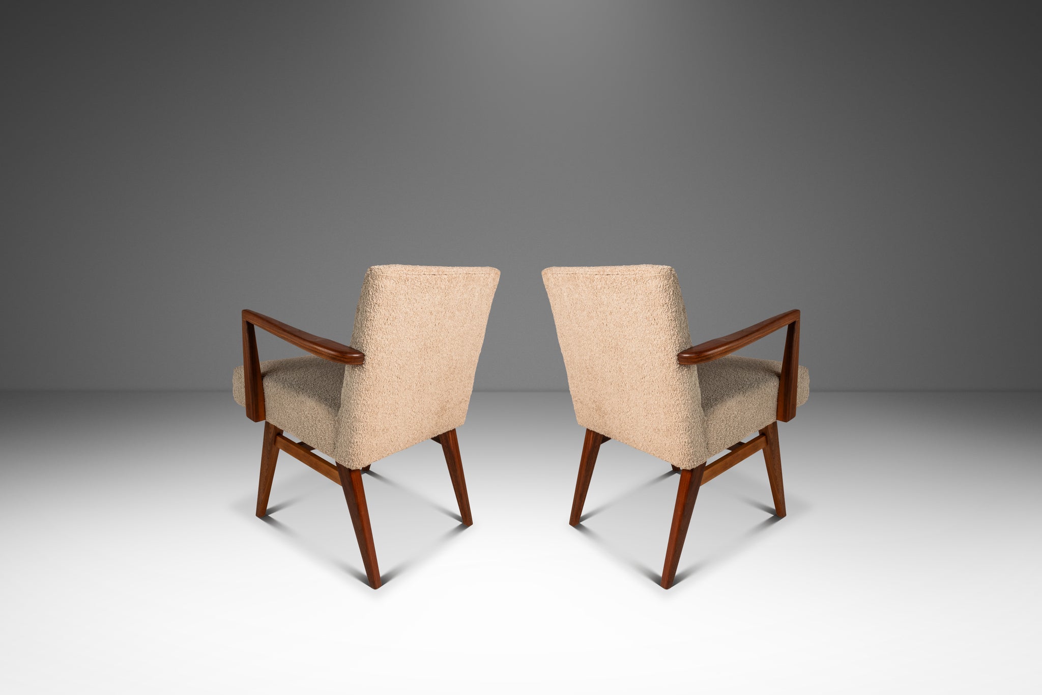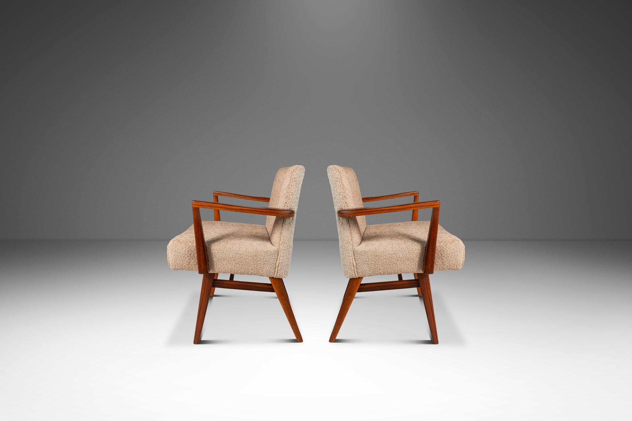 Title: Set of Two (2) Rare Mid-Century Modern Model C-108 Armchairs in Walnut & Beige Bouclé by Jens Risom for Jens Risom Design, USA, c. 1960s