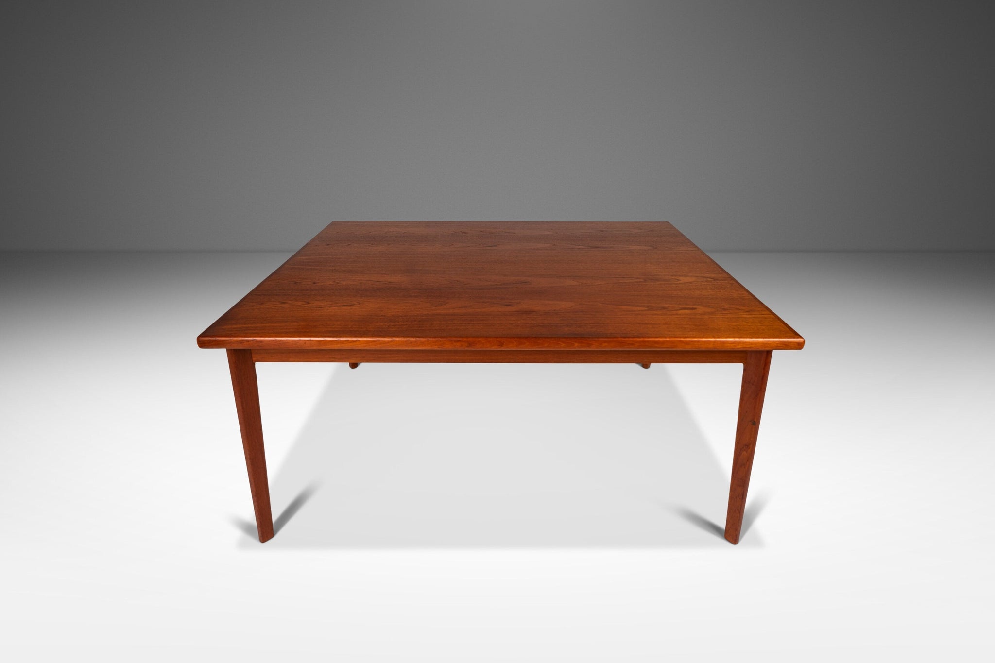 Condition Details: This gorgeous Danish-made dining table is in 100% original, vintage condition and has aged to perfection! The mix of solid and veneered teak composition is in remarkably excellent condition given it's age showing only surface scratches on the top (the worst of which can be seen in the detail photos provided) as well as some nicks, scratches and scuffs on the legs (again shown in the detail photos provided). With that said the wood is in overall very good shape and the teak woodgrains are absolutely stunning in natural light.