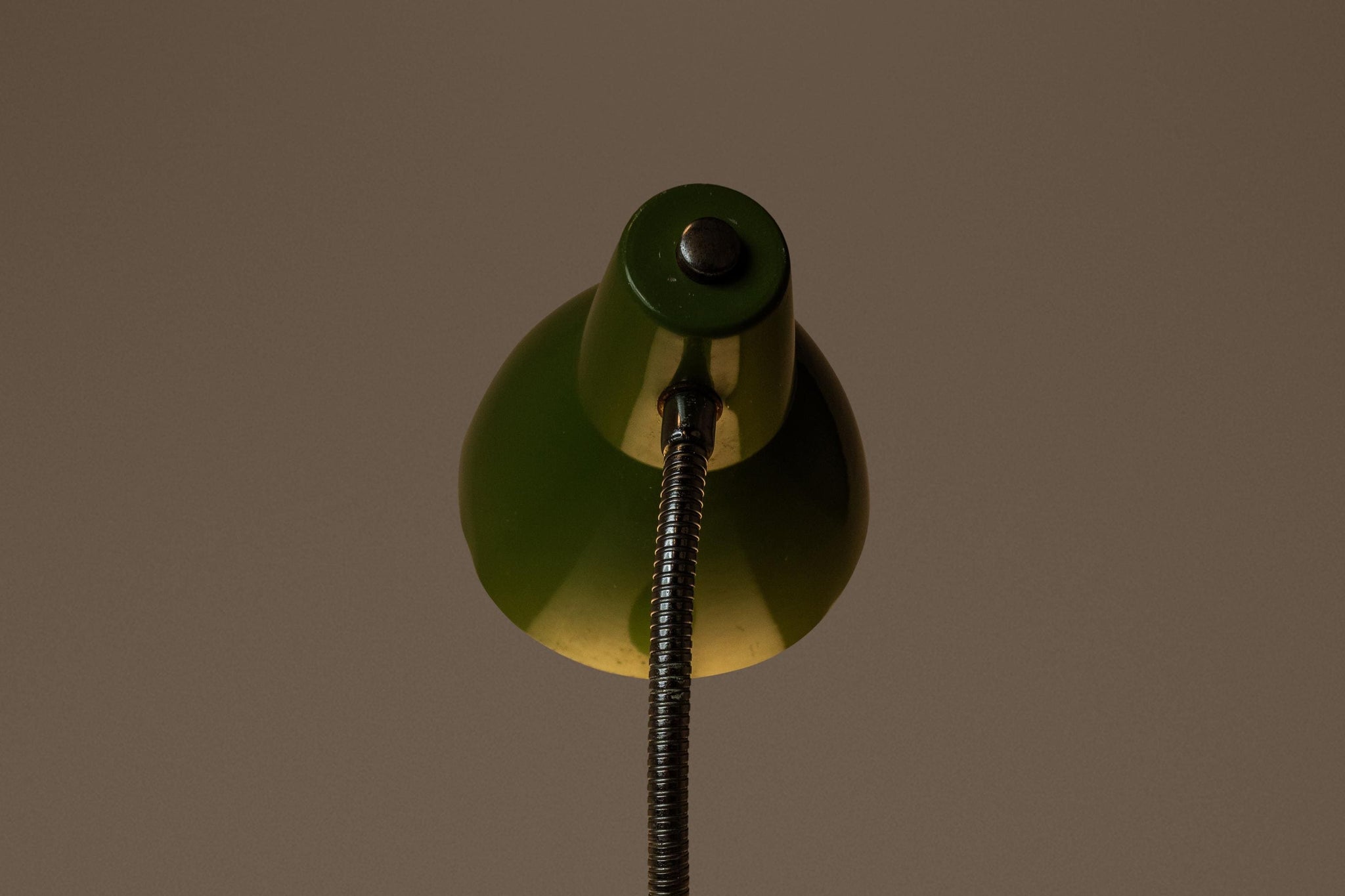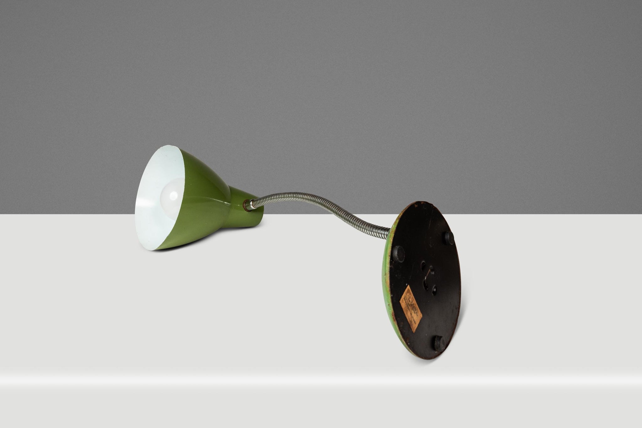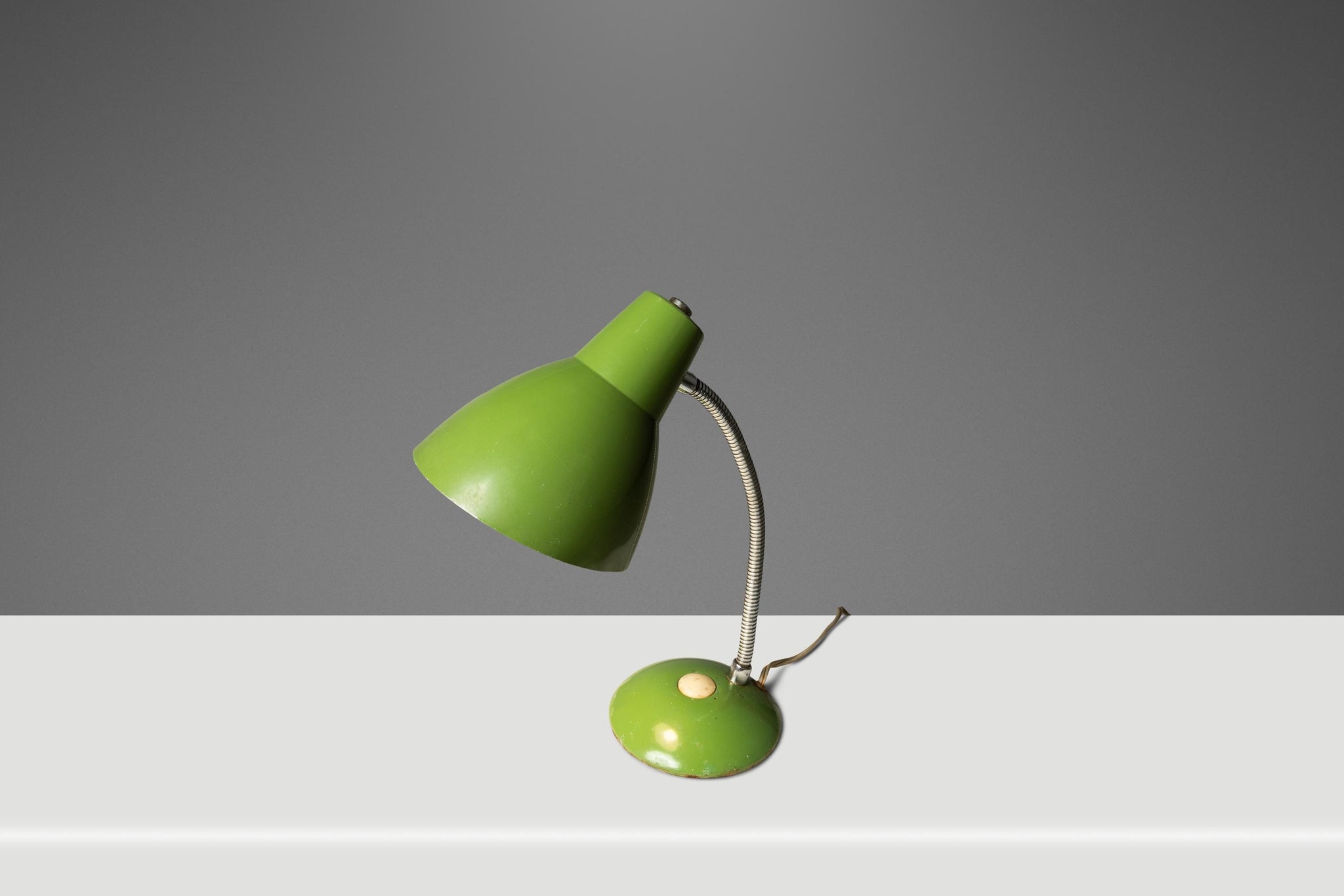 Title: Mid-Century Modern Industrial Patinaed Adjustable Height Desk Table Lamp in Army Green, c. 1960s