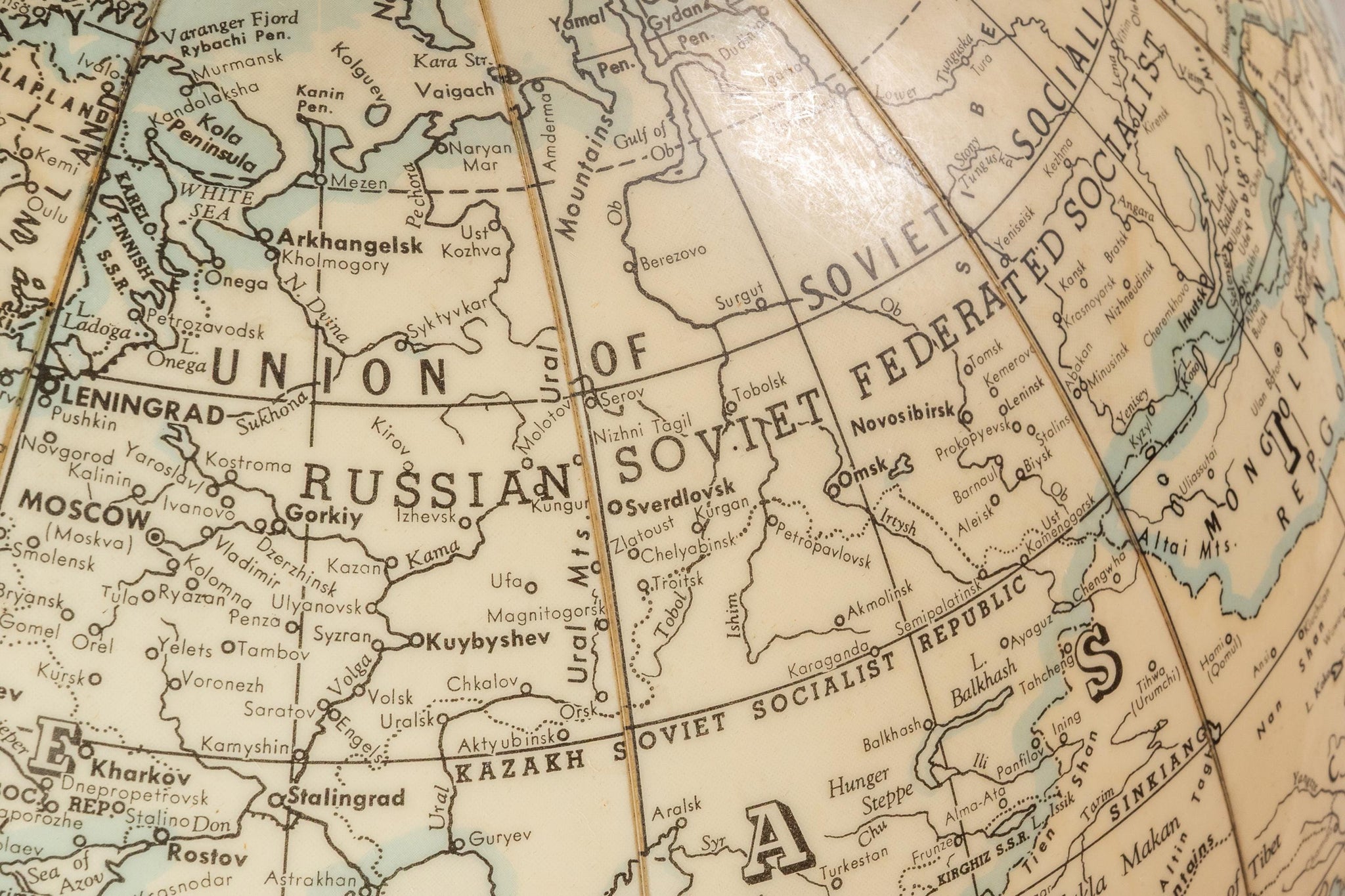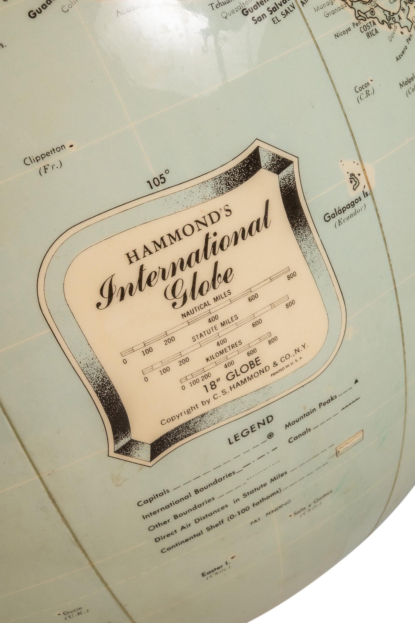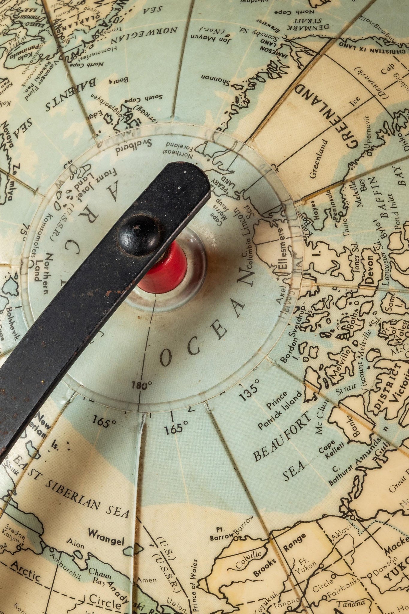 Condition Details: This nearly 75 year old globe is in 100% original, vintage condition! The vinyl "spherical" portion of the globe shows only minor areas of light discoloration and fading (the worst of which can be seen in the detail photos provided), but shows no tears, odors or other damage whatsoever.