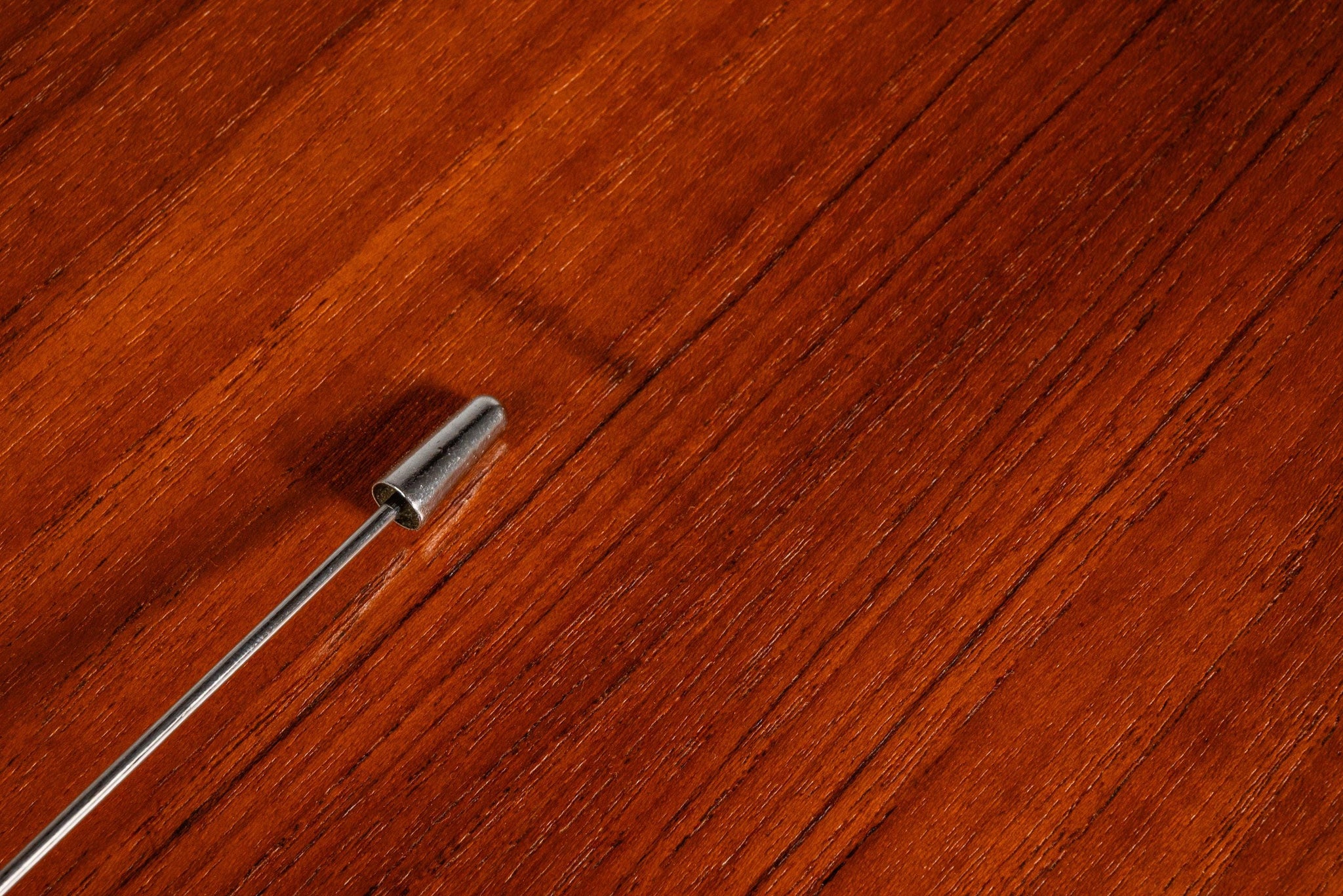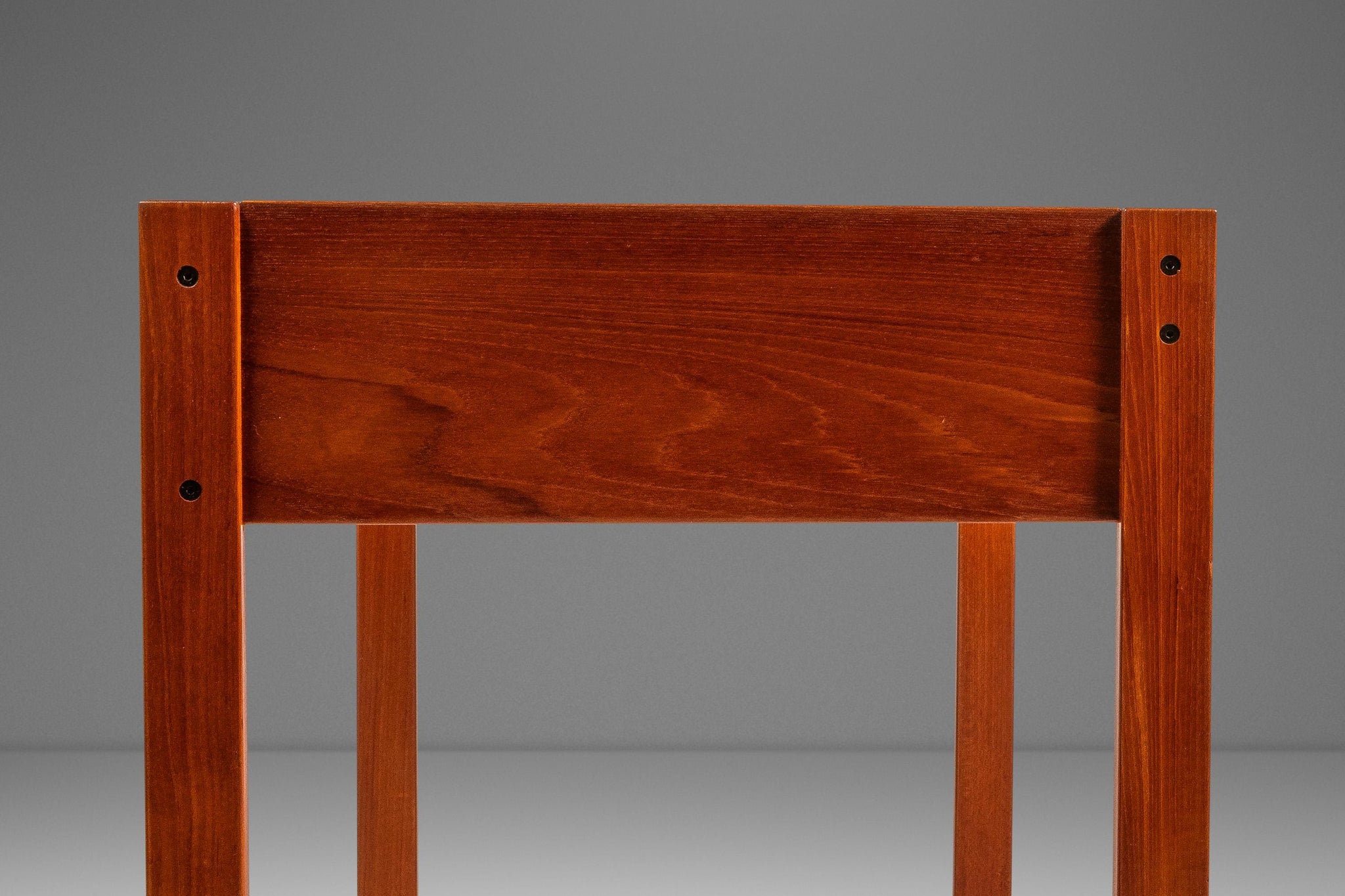About: This exquisite Mid-Century teak desk, designed by Peter Løvig Nielsen for Løvig Dansk, showcases the refined craftsmanship of 1960s Danish design. Crafted from warm teak with a smooth, natural finish, the desk features a clever hidden storage compartment revealed when sliding the piece forward, offering discreet space at the back. A single drawer provides additional functionality, blending seamlessly with the desk’s minimalist lines and organic aesthetic. Its sturdy construction and timeless style make it an ideal workspace or accent piece for a study, office, or collector’s curated interior, embodying the elegance of Scandinavian modernism.